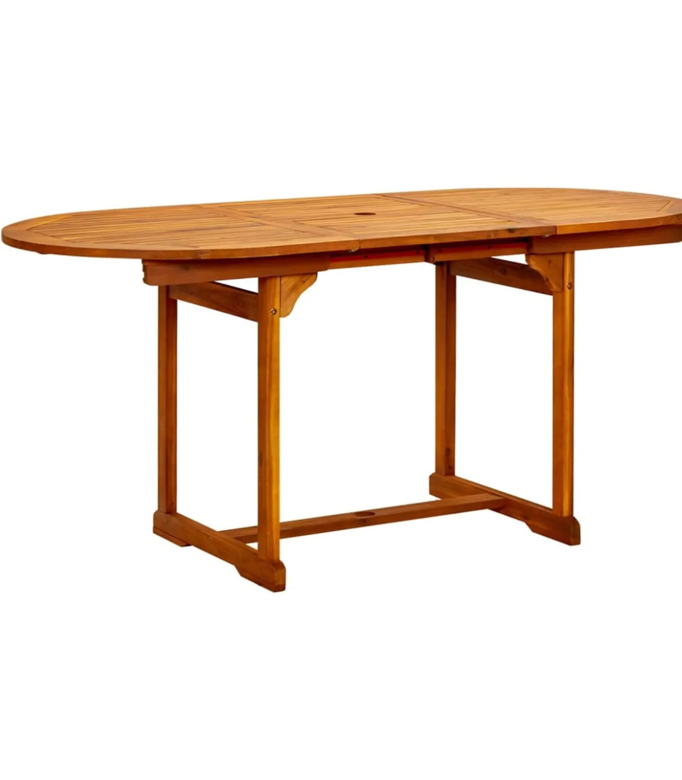 Hoogwaardig materiaal: deze tuinset is gemaakt van massief acaciahout, een tropisch hardhout dat weerbestendig en zeer duurzaam is. Het geoliede oppervlak kan eenvoudig worden schoongemaakt met een vochtige doek.