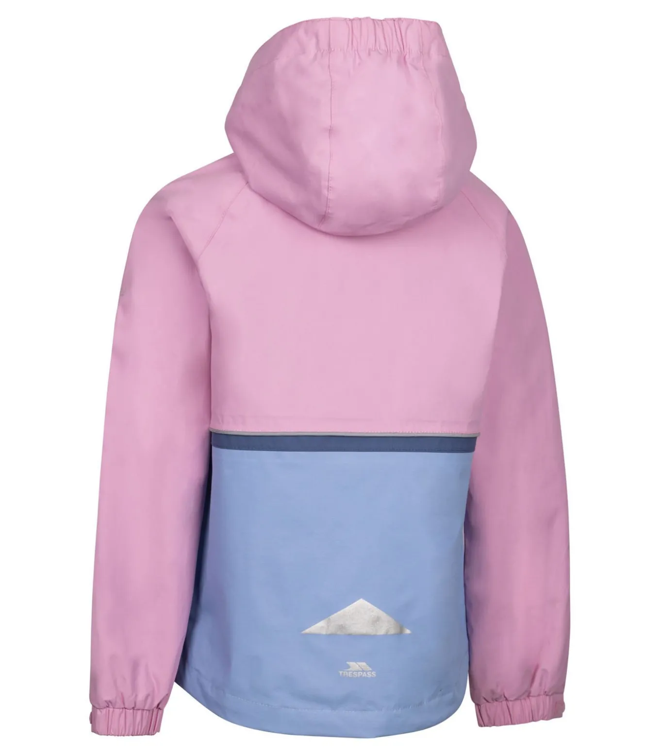 Trespass ALLORA – Roze Jasje is een buitenjas met een volledig polyamide buitenslaag en een PU–verharde schil. Het jas heeft een volledige poliester ingebouwd en gedrukte lining, en het ontwerp bevat kleurenblok en het logo van de merknaam. Deze waterdichte jas is uitgerust met TP50 waterdichtheidstechnologie en beschikt over een kapiteinshalslijn, haak– en lijngordels, en heeft langarmen. Het jasje heeft twee zijzakken met ripssluiting, en de opneembare kappen kan worden gebruikt om de hoeveelheid water uit het jas te laten stromen. Dit Trespass jasje is geschikt voor kinderen tussen 2 en 12 jaar, met maten van 21 tot 31 inch.