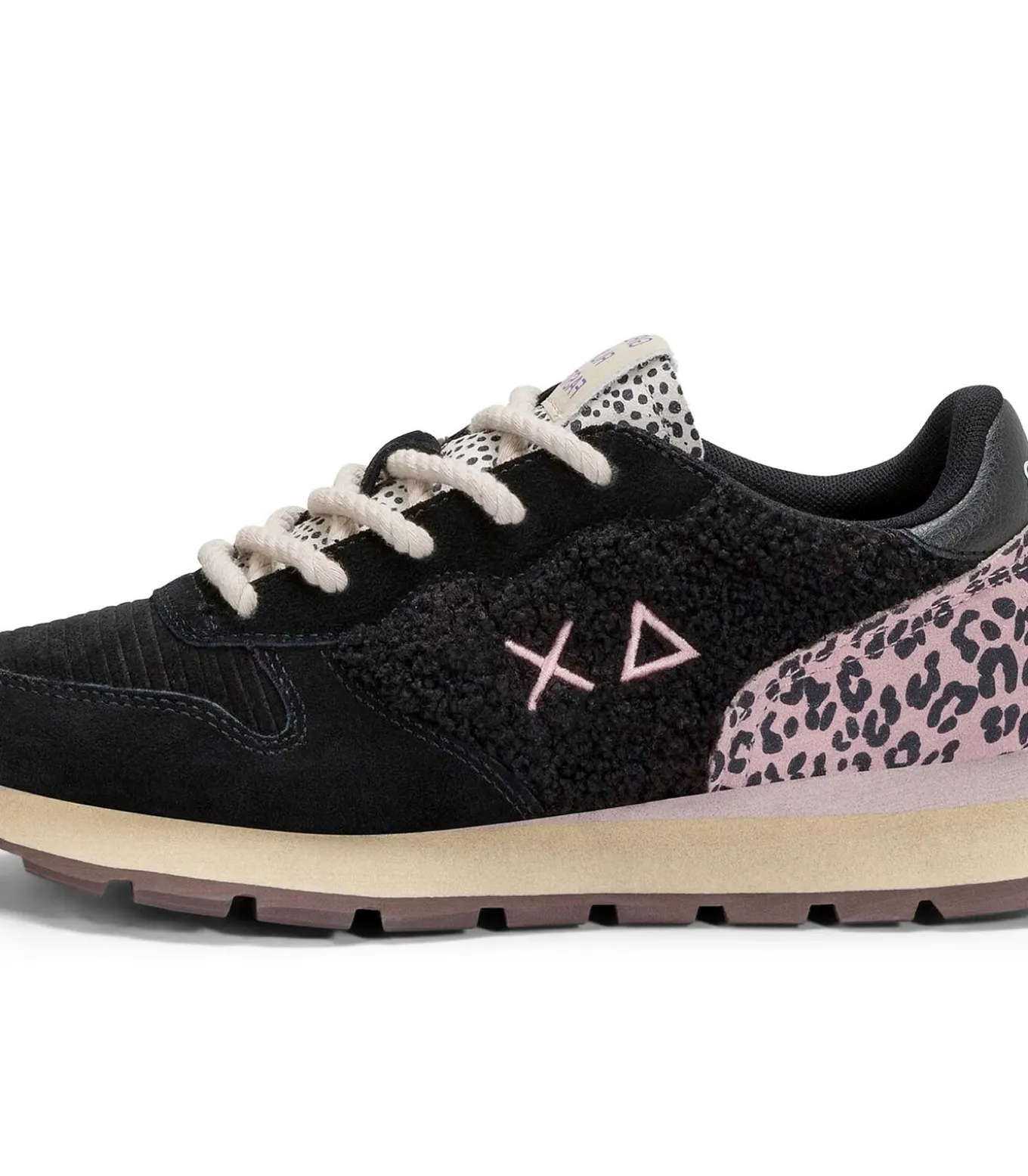 Kleur: Zwart. Samenstelling: 55% Leer, 41% Stof, 4% Polyurethaan. Details: Winterse sneaker met dierenprint op de achterkant, contrasterende tong en roze geborduurd logo. Suède inzetstukken en rubberen zool met beige profiel voor een gedurfde, eigentijdse stijl. Gebruik: Ideaal om casual outfits op koude dagen compleet te maken, perfect in de stad met jeans, gebreide kleding en jassen voor een urban–chique touch.