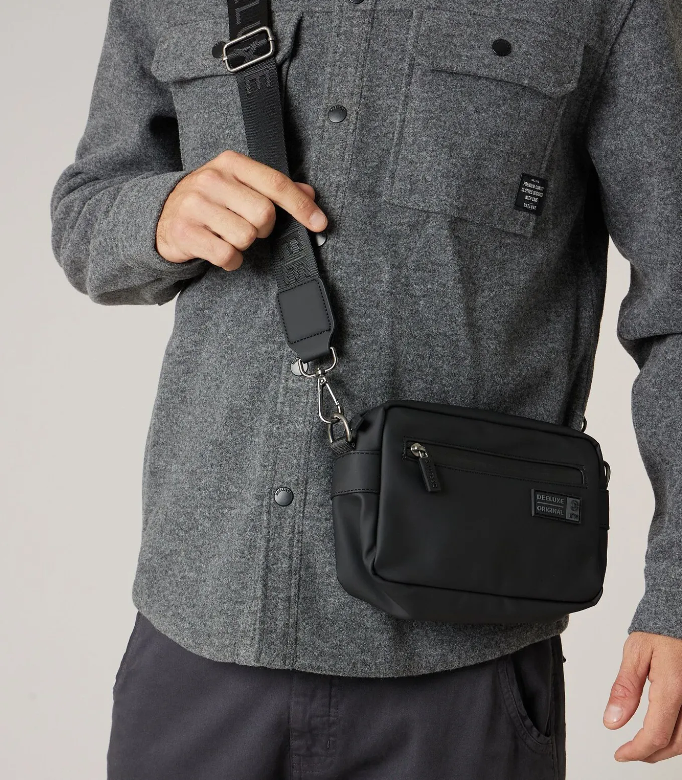 AMIR heuptasje. Deze praktische tas maakt indruk met zijn compacte vorm en strakke afwerking. Hij heeft een hoofdvak met rits en een discreet voorvak met rits. Dankzij de verstelbare logoband kan hij naar wens om de taille of schuin over het lichaam worden gedragen. De geborduurde Deeluxe–patch geeft dit functionele accessoire voor dagelijks gebruik een vleugje urban stijl. Gemaakt van duurzaam synthetisch materiaal.