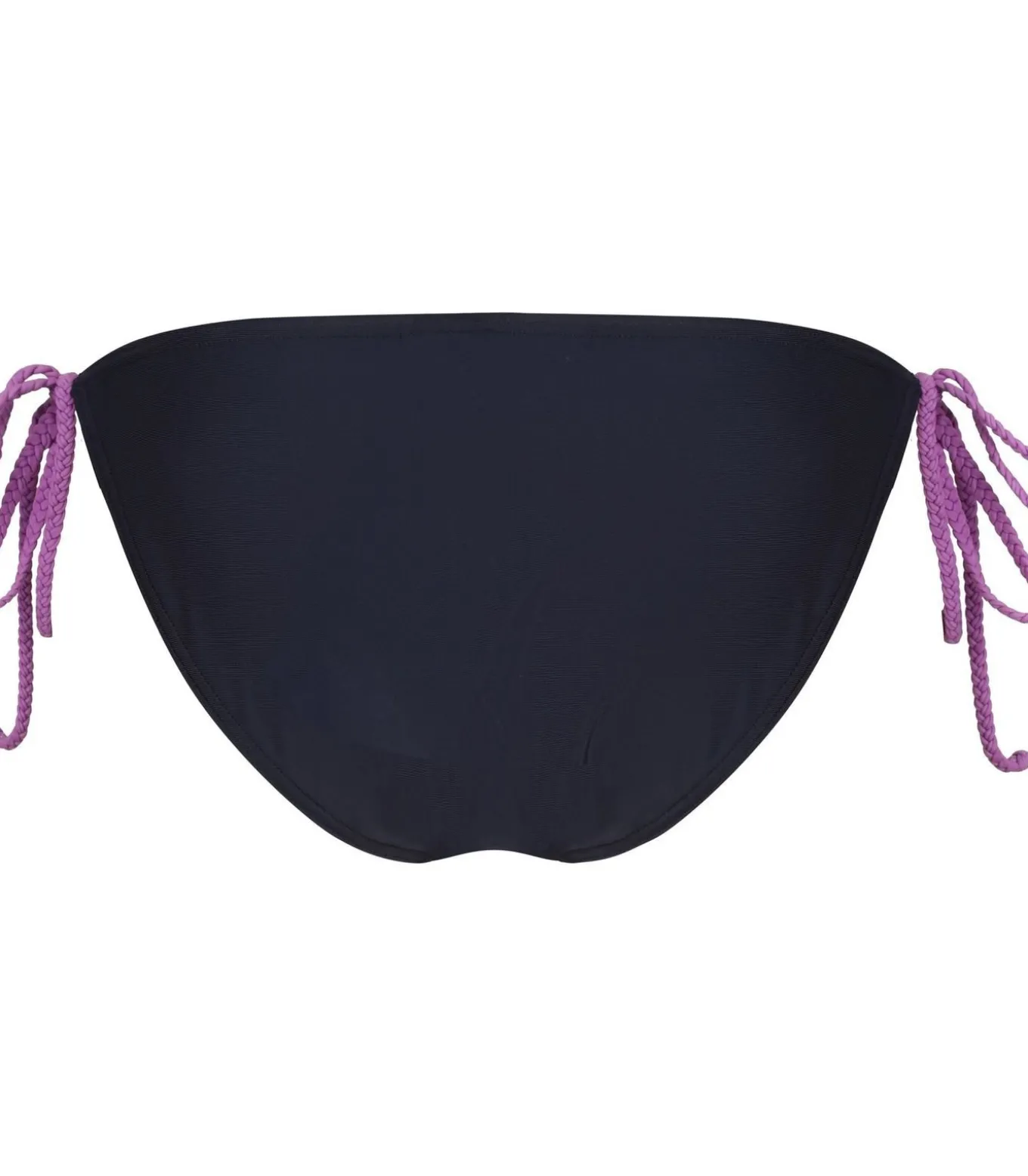 Regatta–ANDRELLIA Marineblauw Bikinibroekje is een duurzaam en trendig bikinibroekje gemaakt van 85% gerecycleerd polyester en 15% elastaan. Het ontwerp kenmerkt zich door contrasterende details en de sluiting is een zijband. De stof is rekbaar en het broekje heeft een gemerkt tabblad. Deze productie technologie is duurzaam en beschikt over UPF 50+ zonneschatting, waardoor je voldoende beschermd bent tegen de schade van de zon.