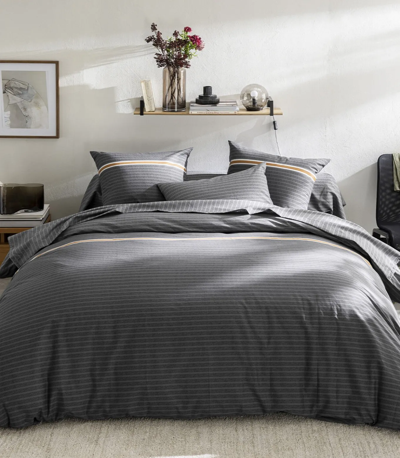 De collectie Anatole bestaat uit een volledig assortiment, een laken, een sloop voor rolkussen, een kussensloop, een hoeslaken en het dekbedovertrek.