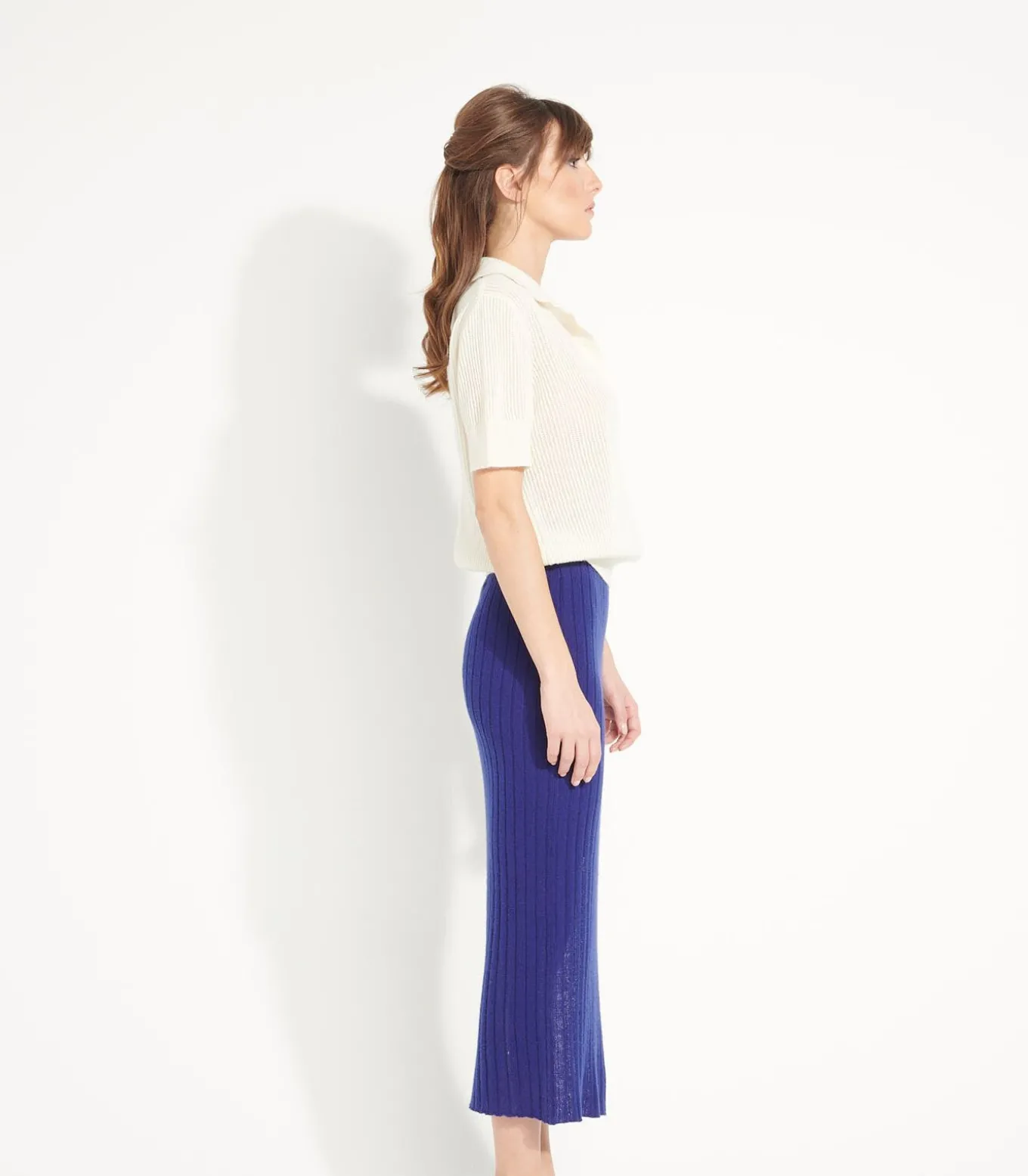 Studio Cashmere8’s Ava 13 midi rok zal zo gemakkelijk te dragen zijn dankzij de slanke pasvorm. Hij is gemaakt van geribd kasjmier en heeft een ruime split om een paar laarzen te showen. Combineer hem met een overhemd of een trui. Het model is 1,72 m lang en draagt maat M. Lengte van de rok maat M 80 cm.