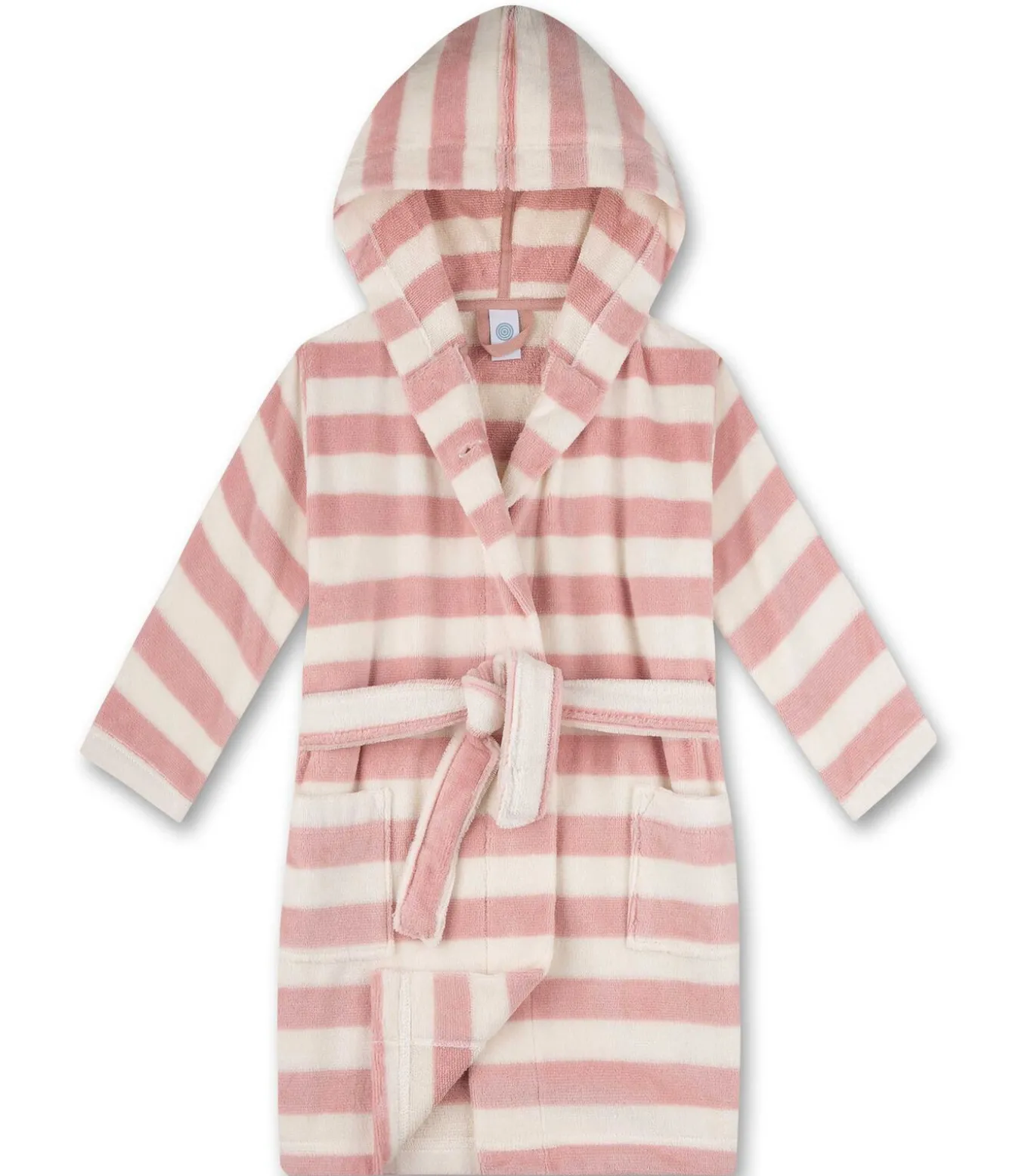 Badjas voor meisjes van het merk Sanetta. Gestreepte jas met een capuchon, bindceintuur en twee zakken aan de voorkant. Zachte katoenmix.