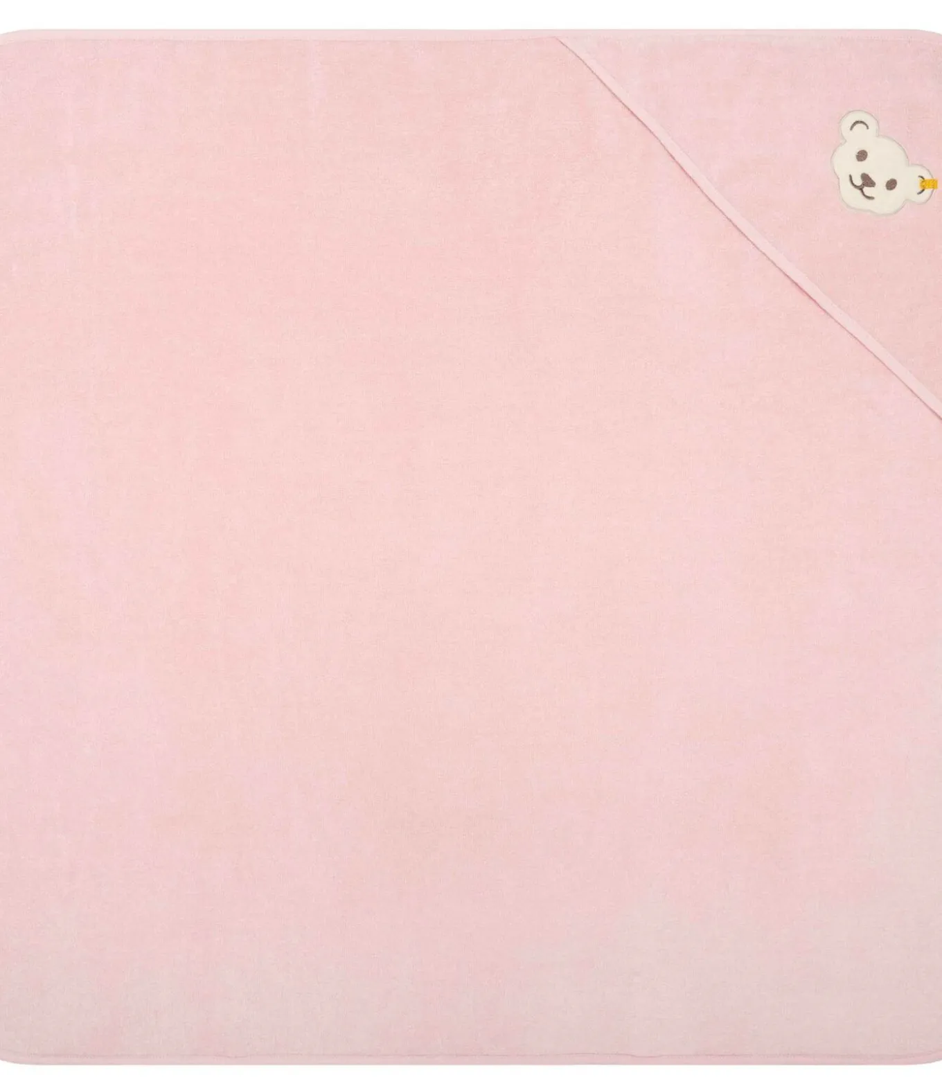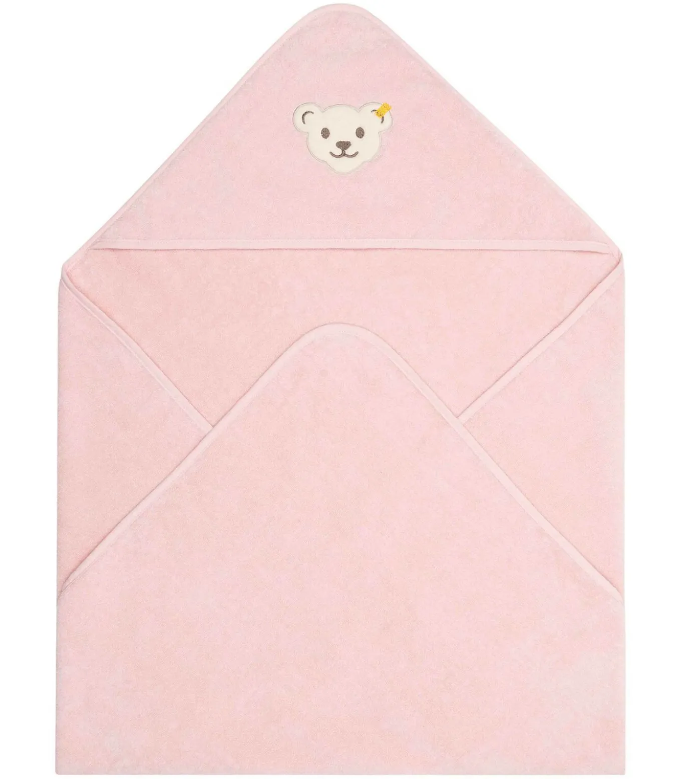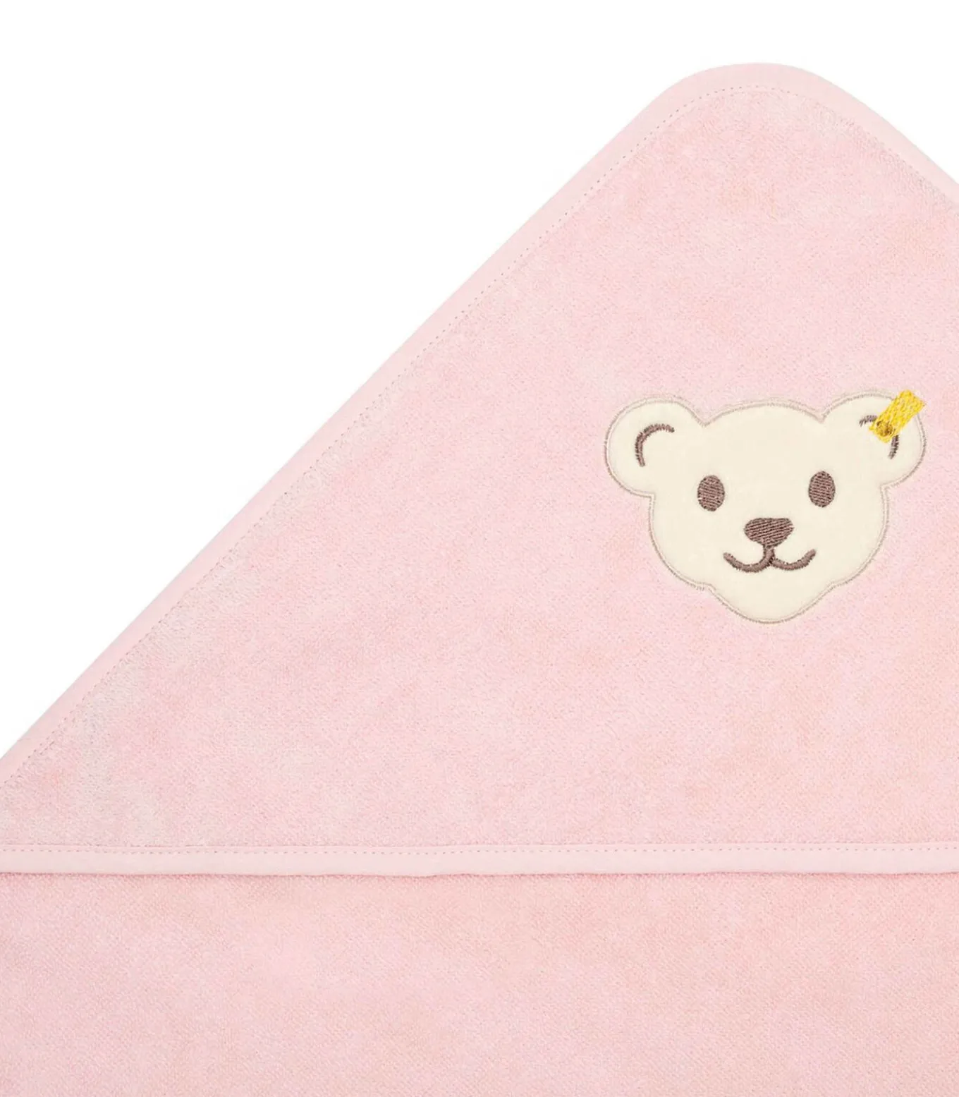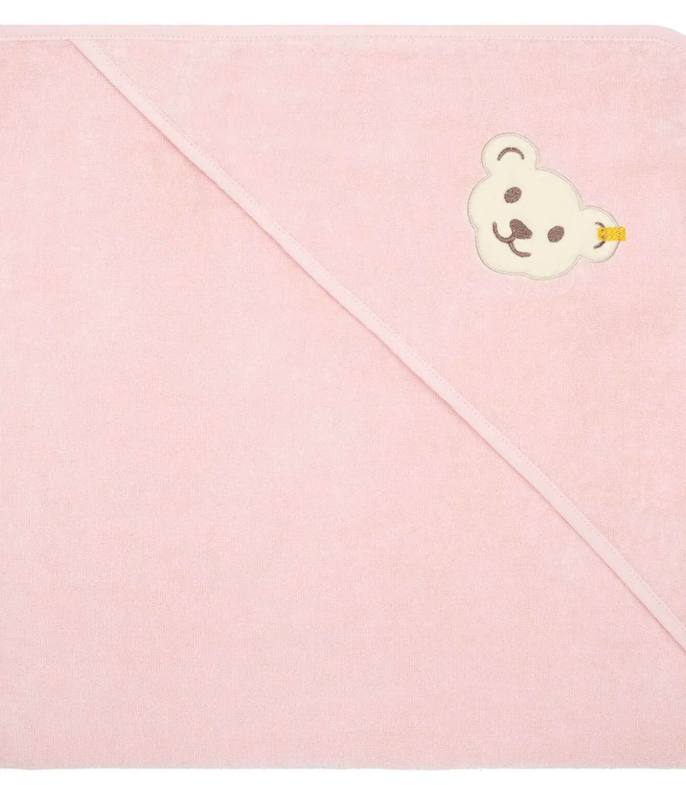 Pluizige, zachte badstof badhanddoek van het merk Steiff. Grote capuchon met teddybeermotief. Behoudt zijn vorm dankzij slijtvaste boorden, puur katoen.