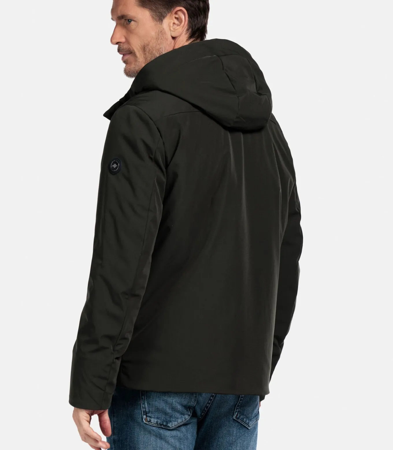 Deze jas is ontworpen voor comfort en bescherming in verschillende weersomstandigheden. Het model heeft een regular fit, een vaste capuchon en een borstzak en zijzakken met rits. Binnenin bevindt zich een handige doorvoeropening voor oordopjes– of oplaadkabels, zodat je je apparaten veilig kunt opbergen. Dankzij het winddichte, waterafstotende en ademende materiaal is deze jas ideaal voor buitenactiviteiten, terwijl de gewatteerde voering extra warmte biedt. Artikelnummer 522355–79