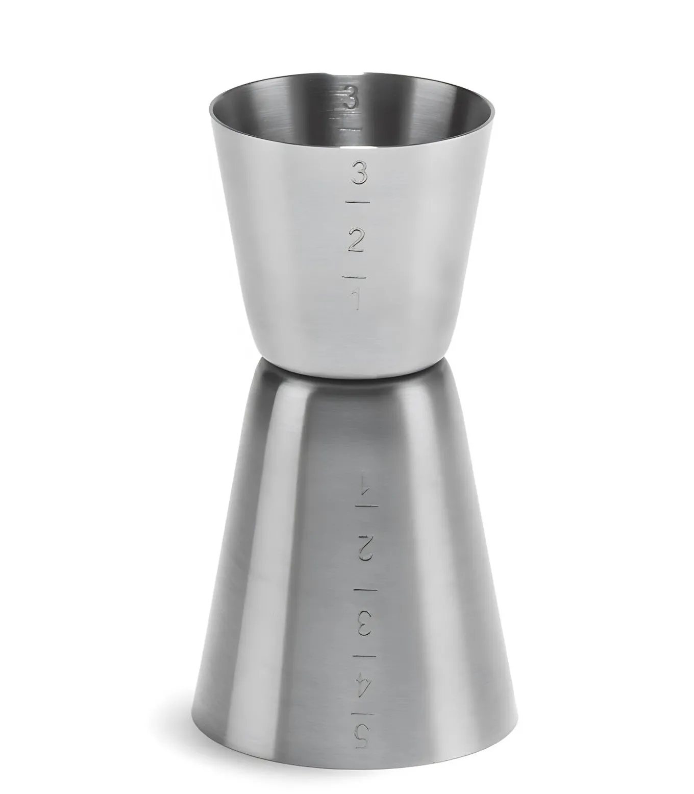 Barmaat van gematteerd RVS met een schaal van 30/50 ml aan de binnenzijde. Kan in de vaatwasser.