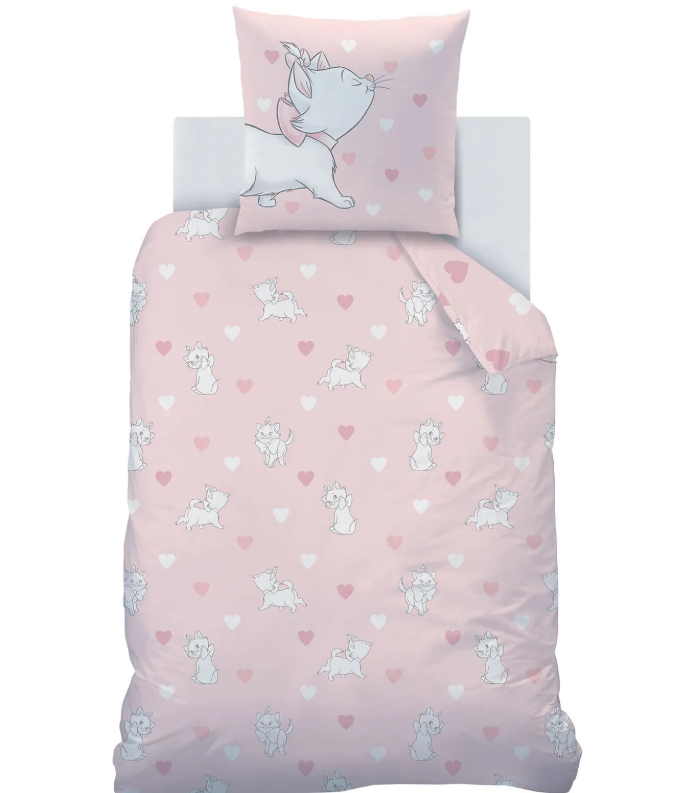 Kinderbeddegoedset met katoenen opdruk, DISNEY HOME LES ARISTOCHATS LOVEDe DISNEY HOME LES ARISTOCHATS LOVE set bestaat uit een omkeerbaar dekbedovertrek 140x200cm en een kussensloop 63x63cm. Kenmerken van de set :Materiaal: 100% kwaliteitskatoen, dicht geweven (57 draden/cm2)Afdrukken van hoge kwaliteitOmkeerbaar: voorkant met all–over printKlep afwerkingWasbaar op 40°.Fabrikant gecertificeerd met OKEO–TEX label (certificeert dat de technische handelingen milieuvriendelijk zijn en geen gezondheidsrisico’s met zich meebrengen) en lid van het BSCI (garandeert goede arbeidsomstandigheden in onze toeleveringsketens).