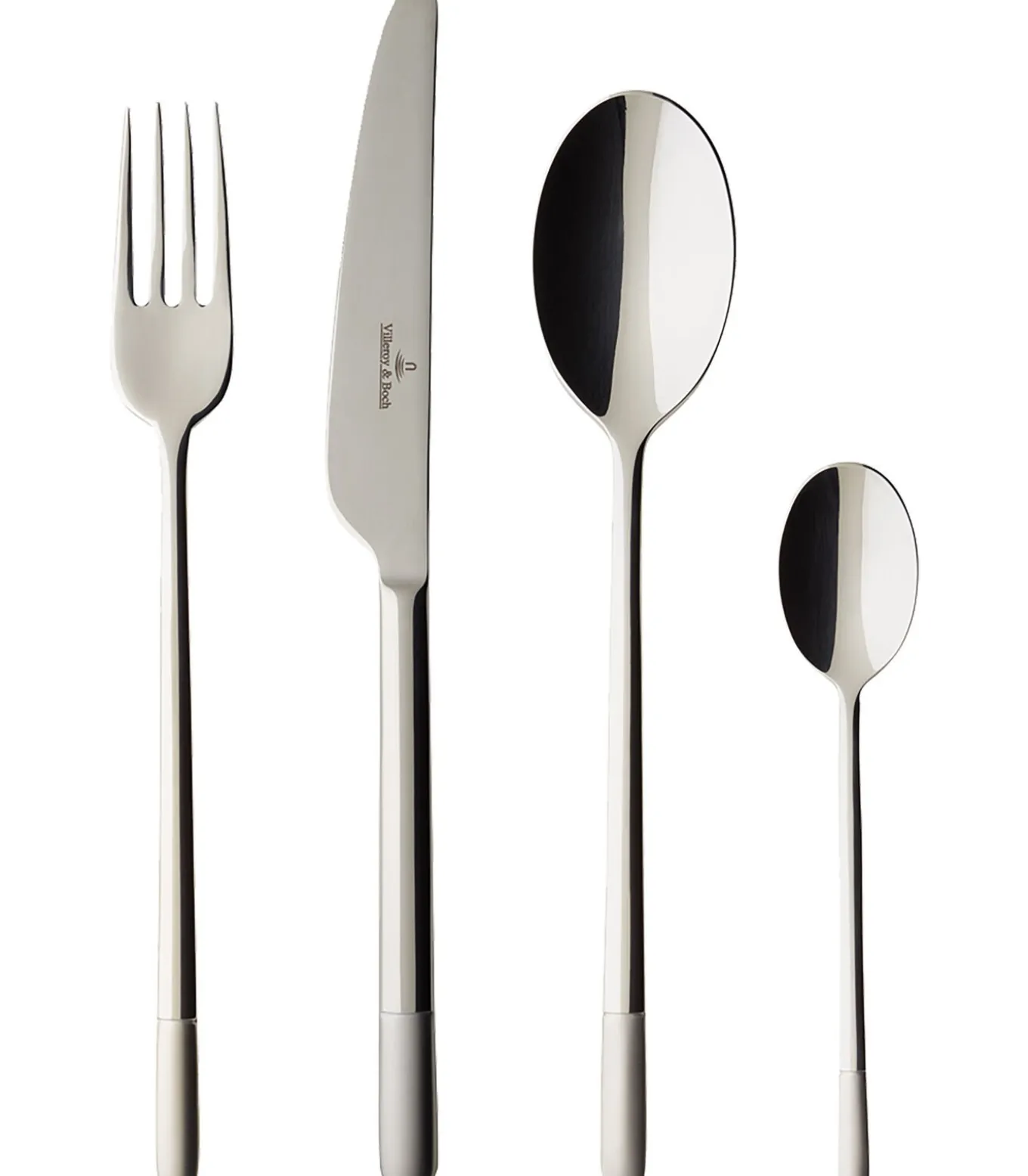 De 24–delige bestekset Ella gesatineerd bestaat uit zes messen, vorken, lepels en koffielepels.