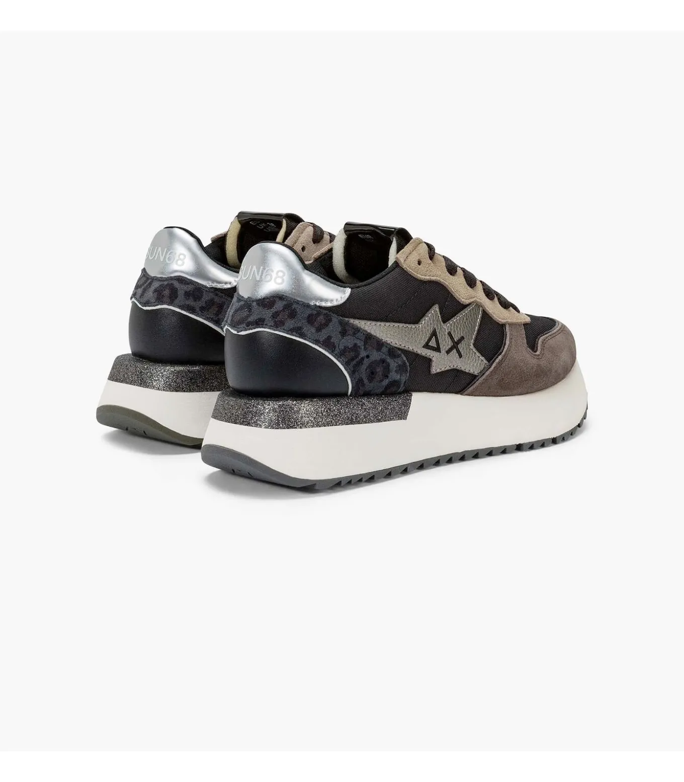 Kleur: Zwart. Samenstelling: 49% Leer, 41% Stof, 10% Polyurethaan. Details: Sneaker met plateauzool en een opvallend design, met een mix van materialen en dierenprints. Metallic details en een geborduurd logo op de zijkant maken de stoere en eigentijdse stijl compleet. Gebruik: Ideaal om urban outfits karakter te geven, perfect te combineren met jeans, een strakke pantalon of een casual jurk voor een moderne en trendy look.
