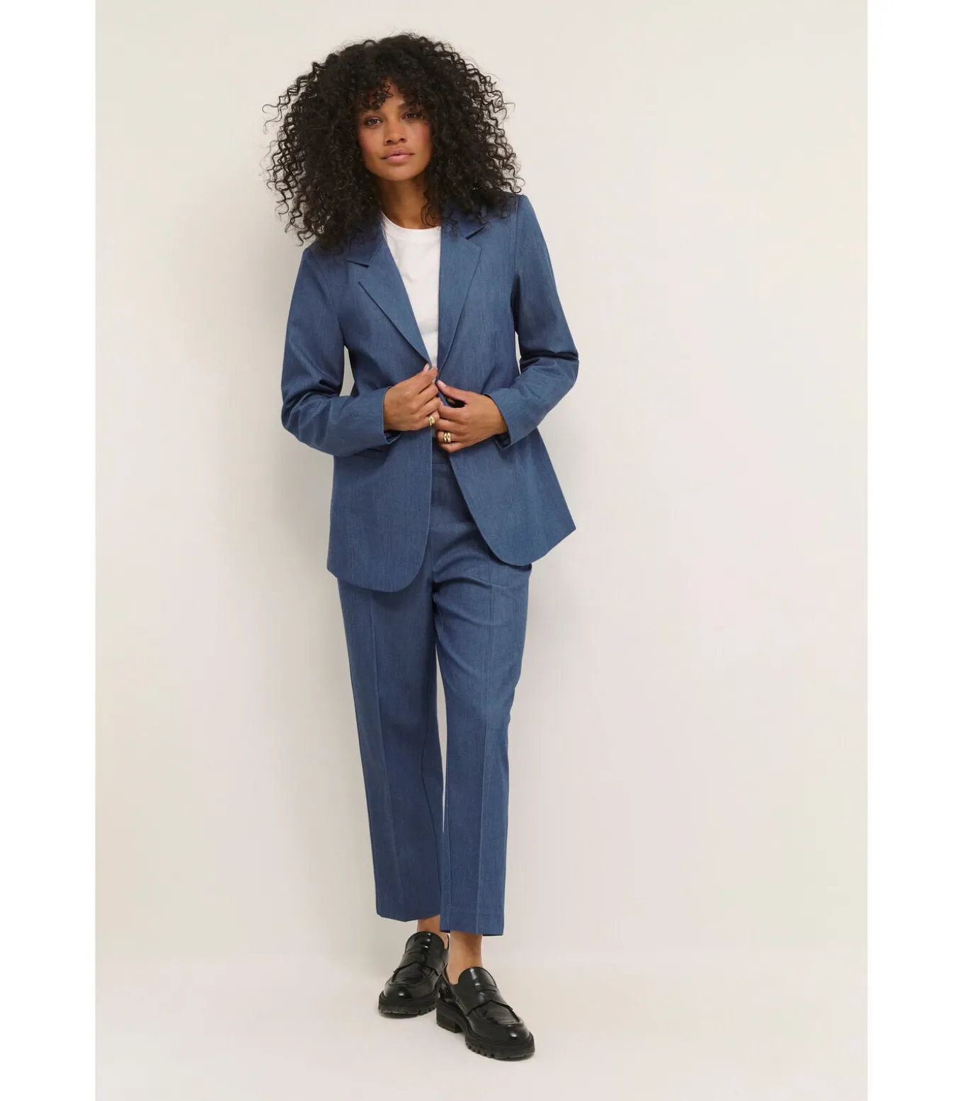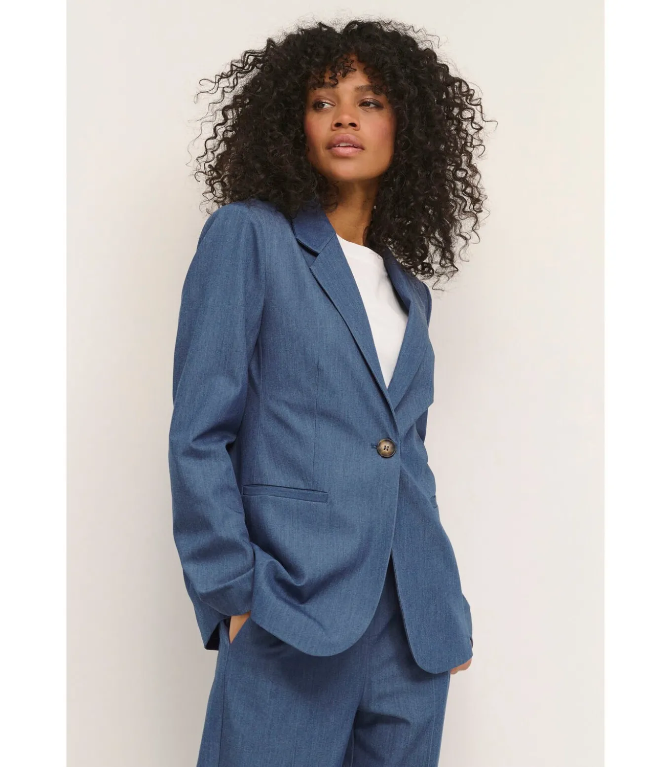 Samenstelling: 77% Polyester (gerecycled), 18% Viscose, 5% Elastaan