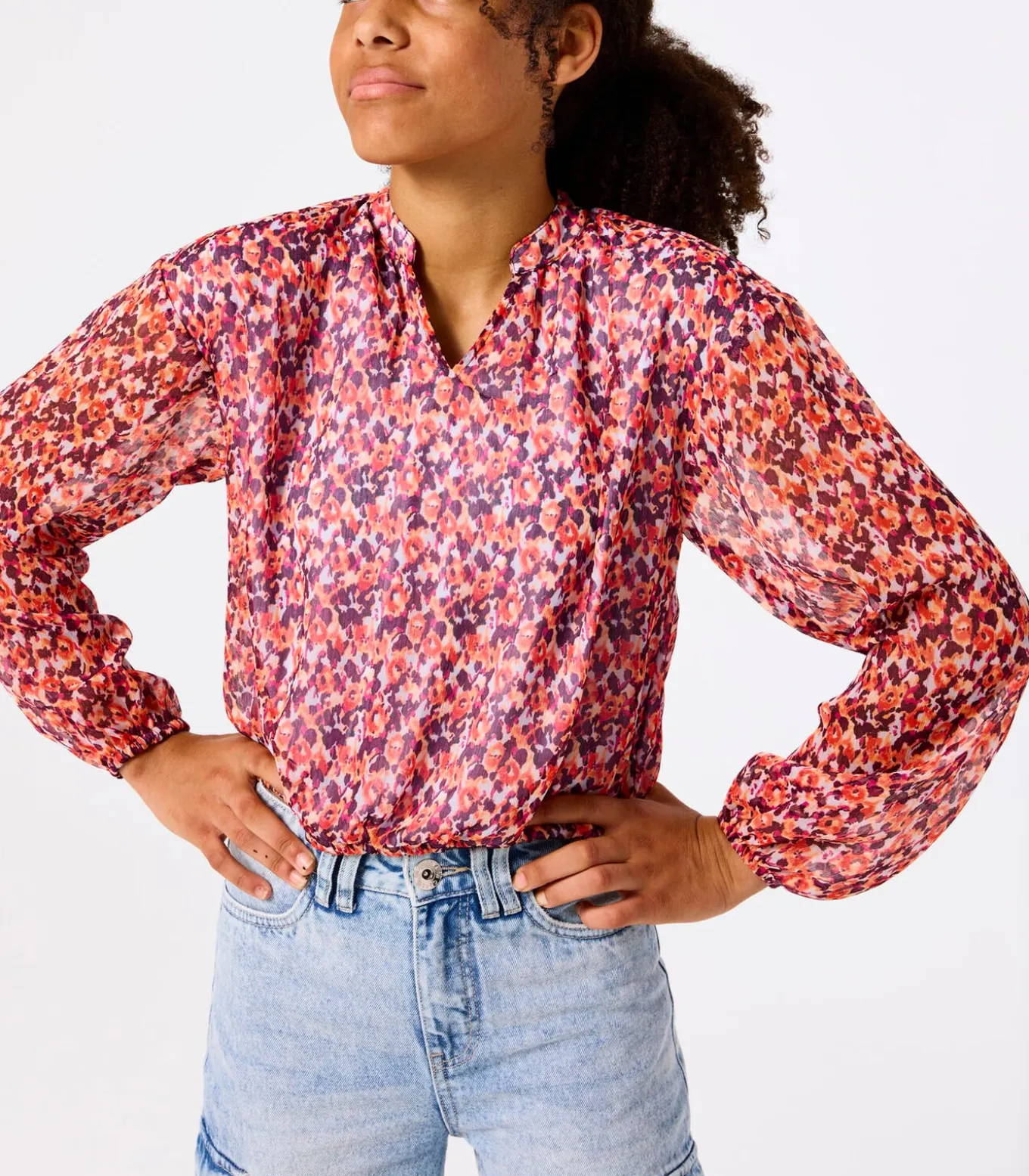 Blouse met allover print. Met dit item creëer je een toffe look. Deze blouse heeft een V–hals, lange mouwen en een regular fit. Dit item is gemaakt van 100% recycled polyster.Dit GARCIA kledingstuk is gemaakt met gebruik van recyclede garen. Recyclede materialen worden gemaakt uit restmateriaal, wat weer wordt omgezet tot grondstof.