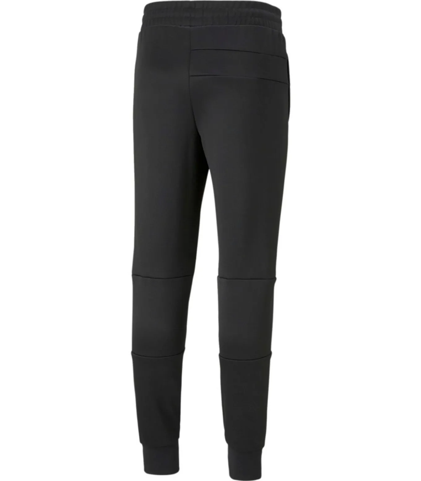 Puma BMW–merk joggingbroek in zwart. Dit model bestaat uit 66% polyester en 34% katoen. Het design bevat het merklogo. De stoftechnologie DryCELL geeft waterafvoerend vermogen. Het product is officieel gelicentieerd. De taillelijn en de kruis elastisch. (Translation: Puma BMW–brand black jogging pants. This model consists of 66% polyester and 34% cotton. The design includes the brand logo. The DryCELL fabric technology provides water–repellent ability. The product is officially licensed. The waistline and the crotch are elastic.)