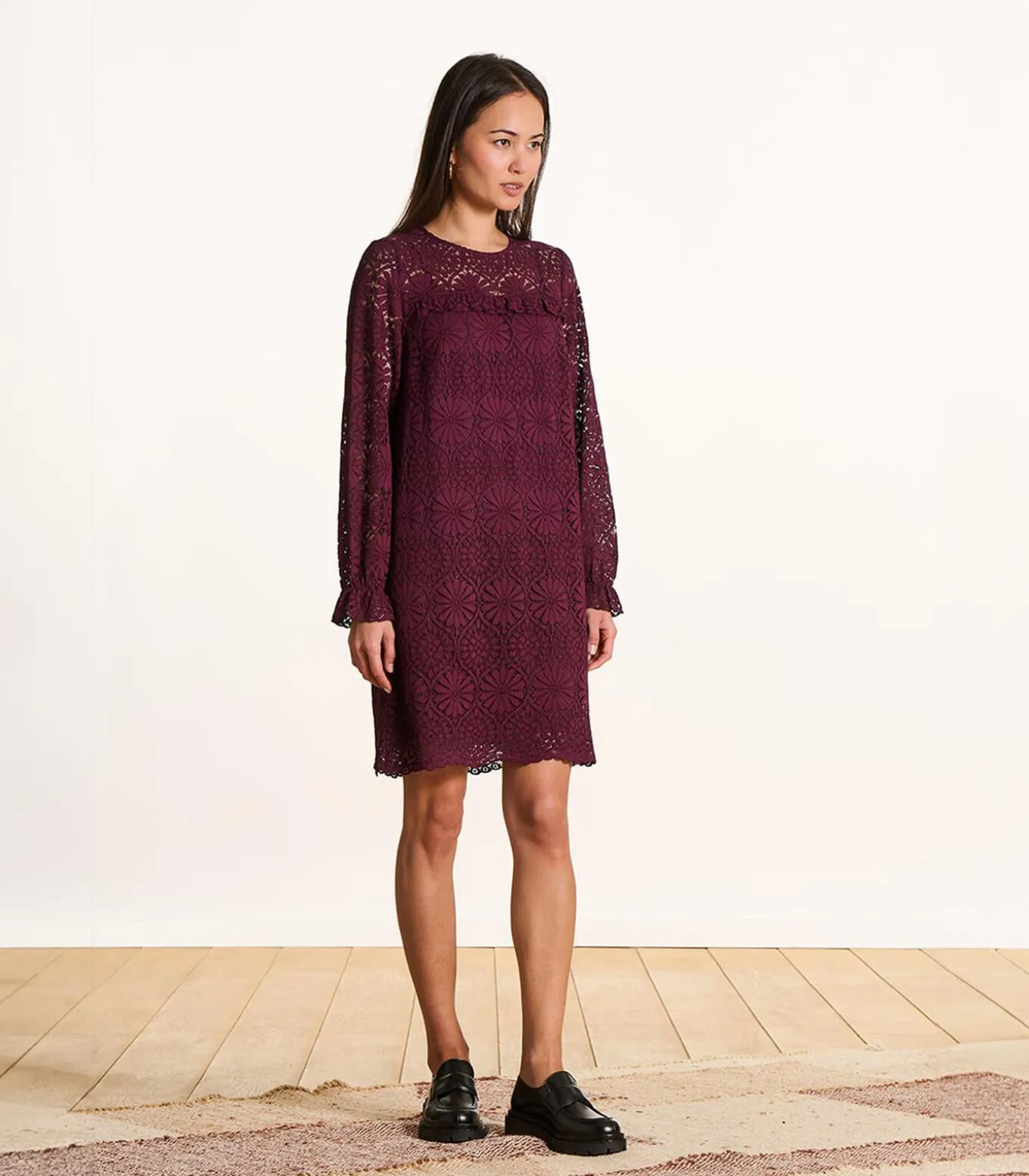 – Lange mouwen met volantdetail aan de mouwzoom