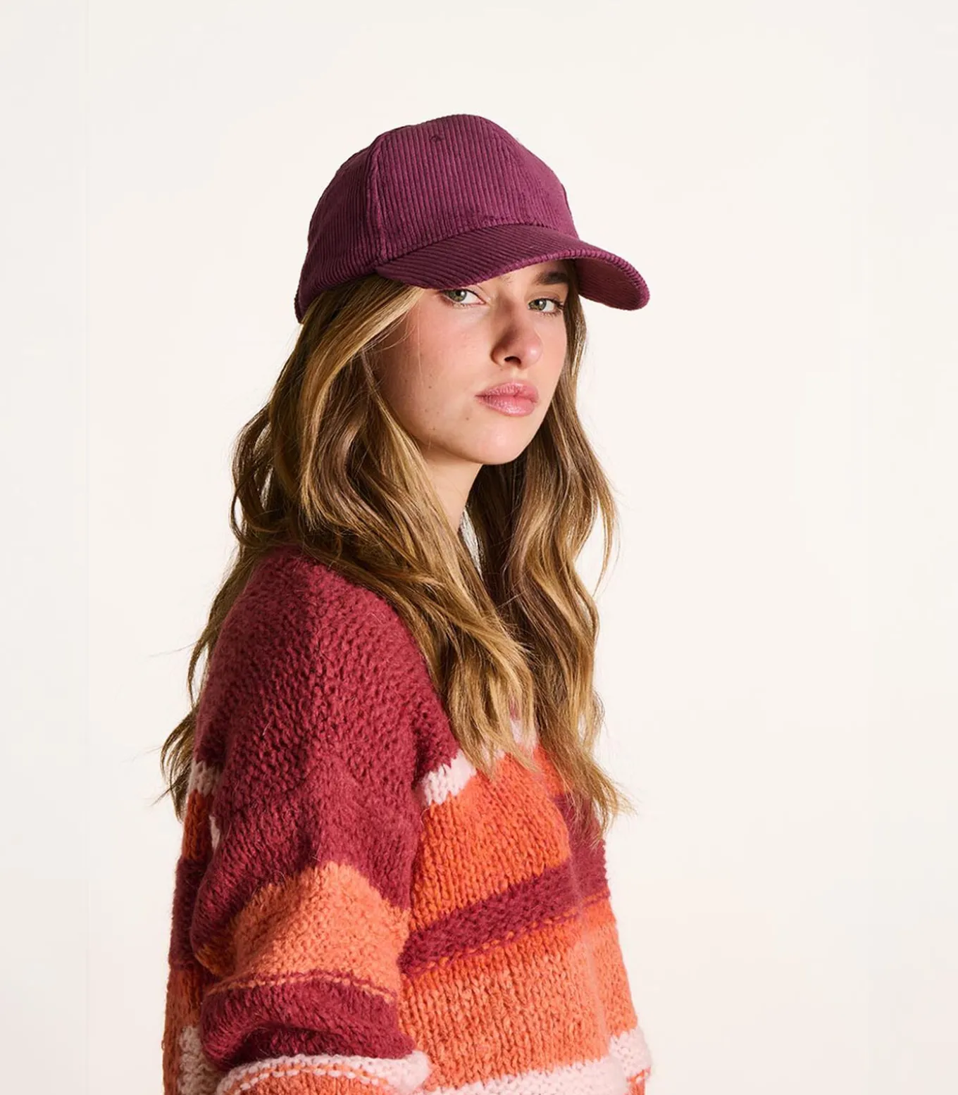 Bordeaux ribfluwelen pet van biologisch katoen