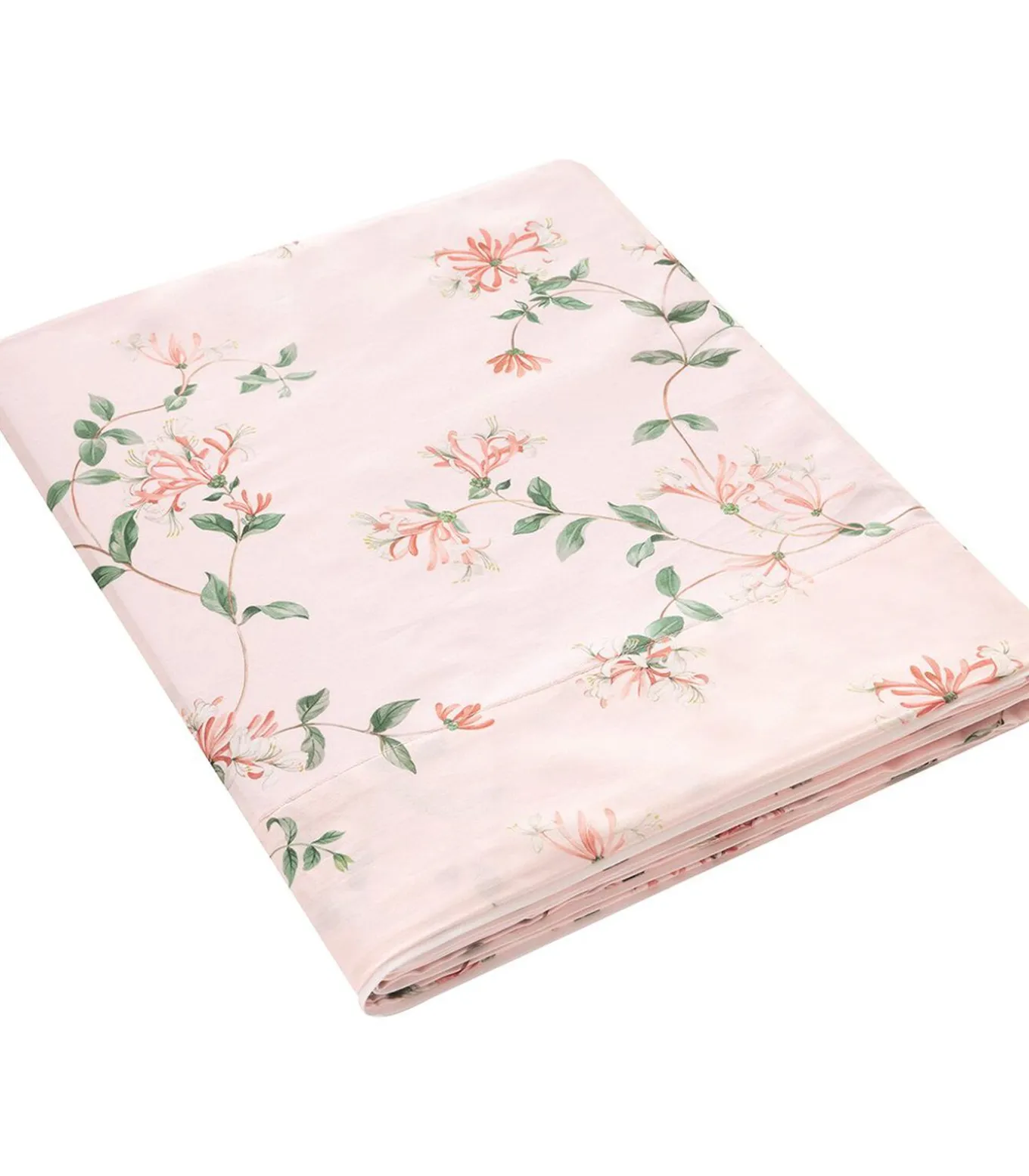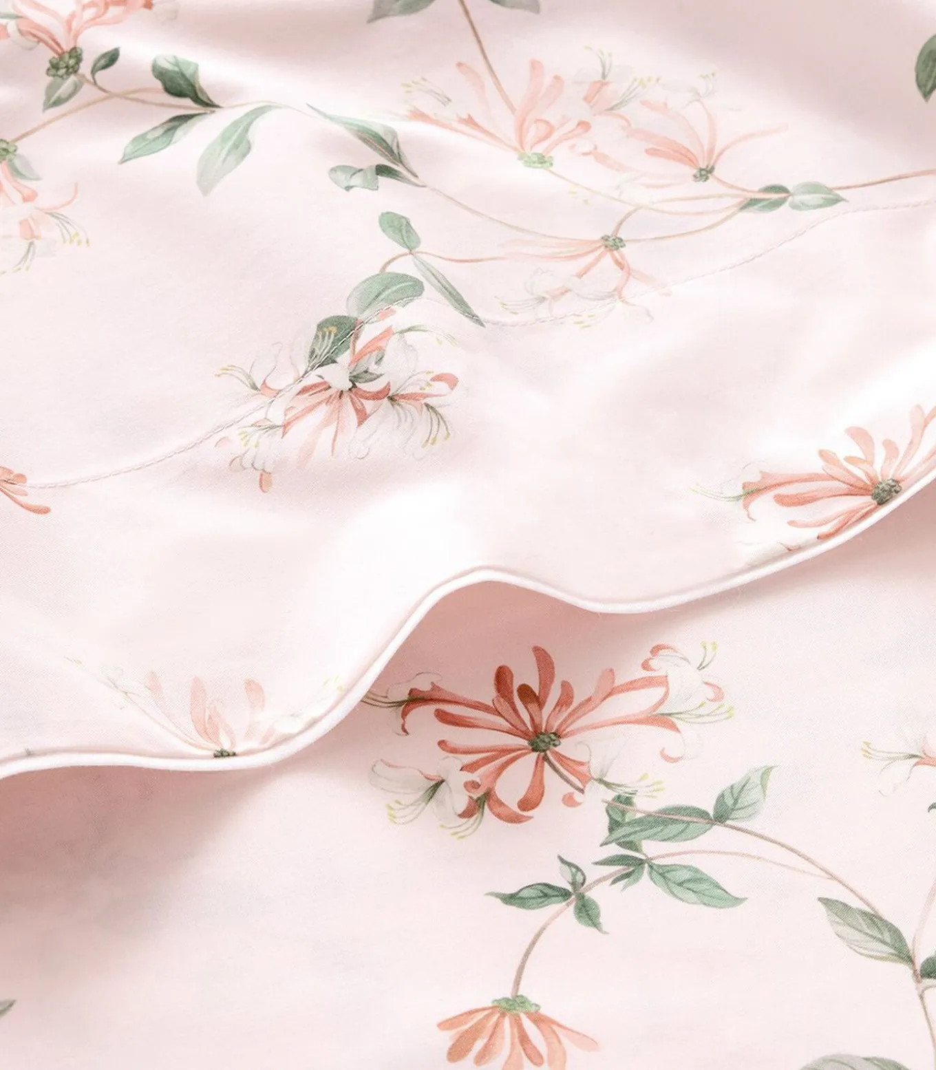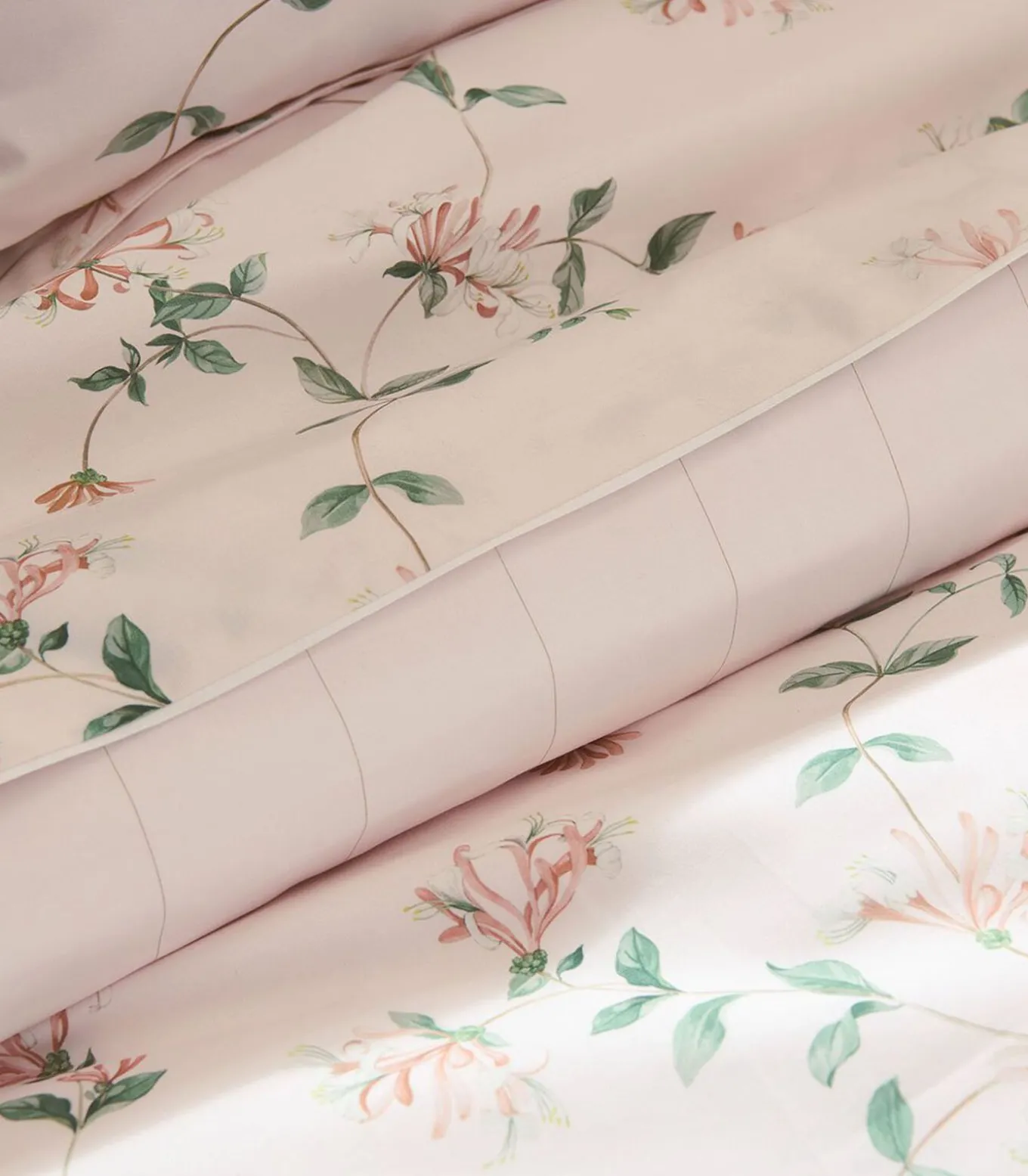Print van kamperfoelie bloemen op poederroze achtergrond