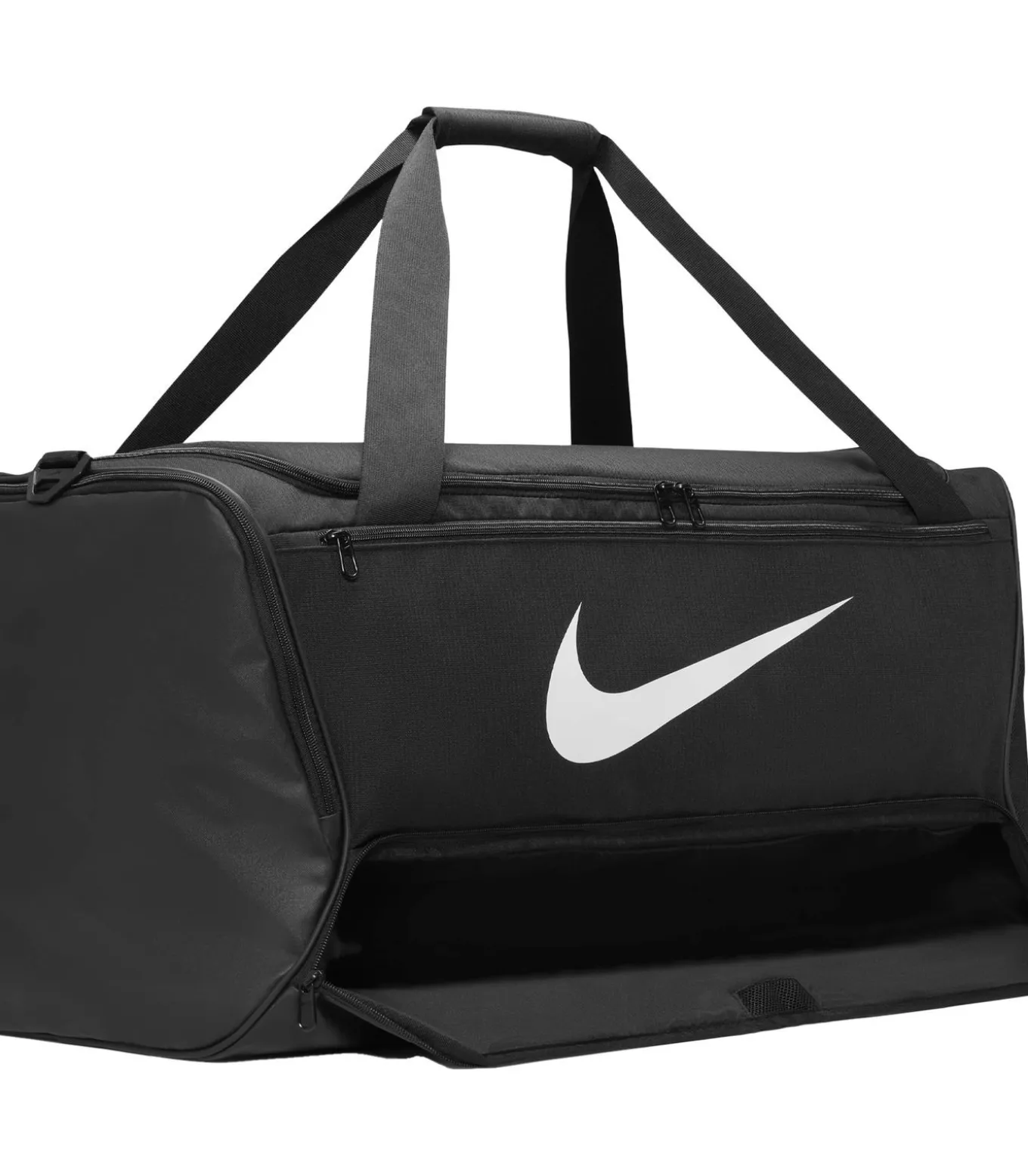 Nike’s Brasília 9.5 Backpack – Zwart, gemaakt van 100% polyester met een breedte van 70 cm en een hoogte van 34 cm, biedt een capaciteit van 95L. Met een diepte van 37 cm, beschikt dit zakje over één voorzak, één binnenzak en een ritssluiting. Het heeft een hoofdcompartiment en een bodemcompartiment. Het is uitgerust met een afneembare riem, gevoerde schouderriemen die verstelbaar zijn. Het ontwerp is versierd met het Nike–logo en de handgreep heeft dubbele handvatten voor gemakkelijk dragen. De bevestiging is tweewegrits.