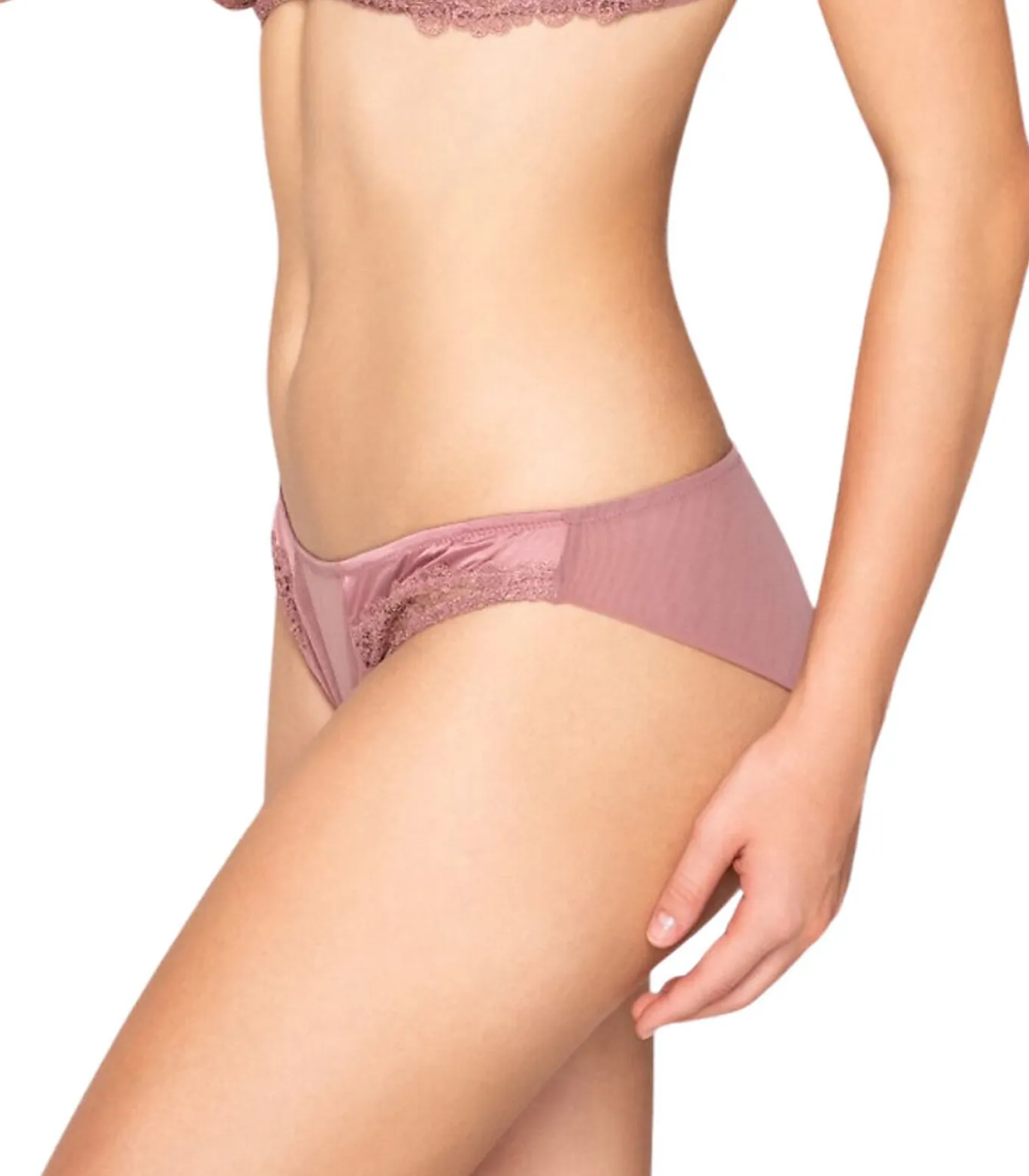 Een delicate Brazilian die je rondingen sensueel omhelst. Subtiel geplaatst kant en satijn voegen een onweerstaanbaar vleugje verfijning toe. Het zal je vrouwelijkheid versterken met een vleugje durf.