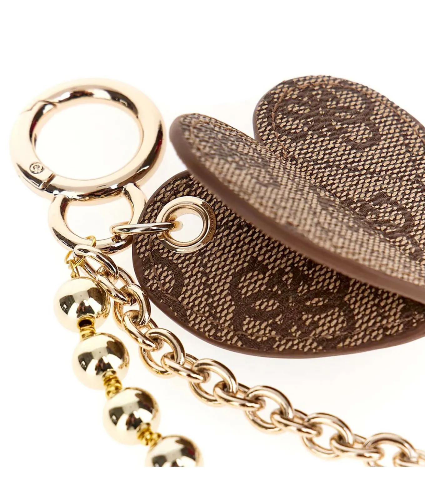 Kleur: Milk Logo Samenstelling: 100% Polyurethaan Details: Brenton sleutelhanger met logo–harthanger en gouden metalen ketting met bedeltjes Gebruik: Ideaal om sleutels stijlvol op te bergen of als decoratief accessoire om aan tassen en rugzakken te bevestigen