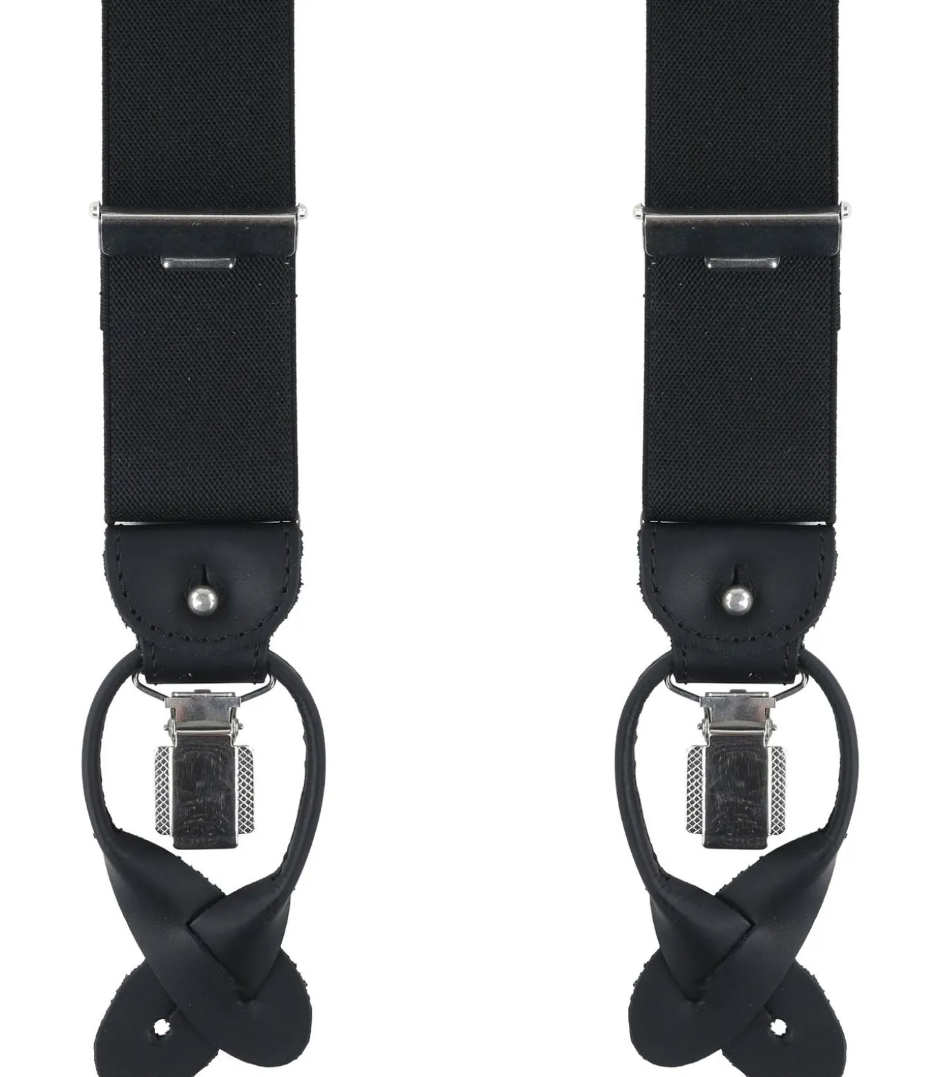 Luxe bretels van het Nederlandse merk Profuomo. De bretels hebben zowel leertjes (patten) als klemsluitingen, deze kun je verwijderen zodat je de bevestiging naar keuze kunt dragen. De bretels worden geleverd inclusief bijpassende bretelknopen die je aan je broek kunt bevestigen. De bretels zijn gemaakt van 85% Polyester gemixt met 15% Elasthaan. Profuomo Y–vorm bretelsZwart van kleurBreedte: 3,5 cm Lussen met knoopsgat + klemsluitingBretels worden geleverd in een luxe verpakking