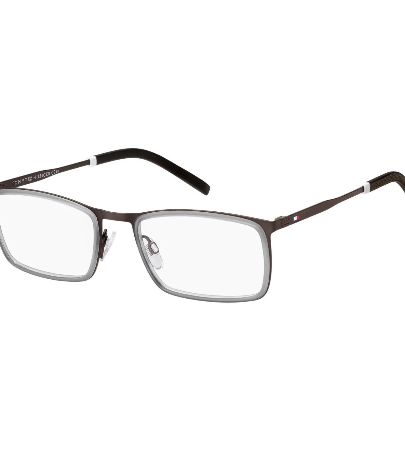 Het matzwarte metalen montuur voegt een vleugje raffinement toe aan deze bril, terwijl de zwarte acetaatveren versierd zijn met het beroemde Tommy Hilfiger logo voor een kenmerkend look. De rechthoekige vorm past bij de meeste gezichtsvormen en door de klassieke zwarte kleur is hij gemakkelijk te combineren met elke outfit.