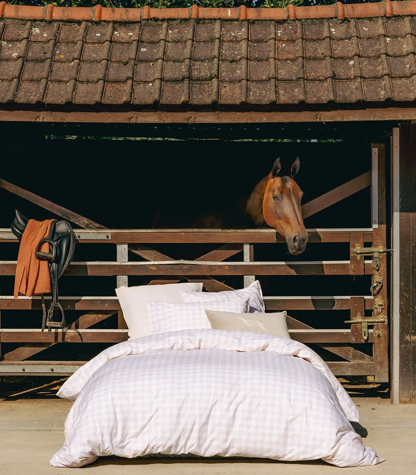 Het model Cadence herinterpreteert het klassieke ruitmotief met een eigentijdse elegantie. Ontworpen in onze Franse ateliers, voegt het een vleugje verfijning toe aan uw kamer, in perfecte harmonie met de collectie “Allure”. Een geometrisch ontwerp dat comfort en stijl combineert, voor zachte nachten en een trendy interieur.