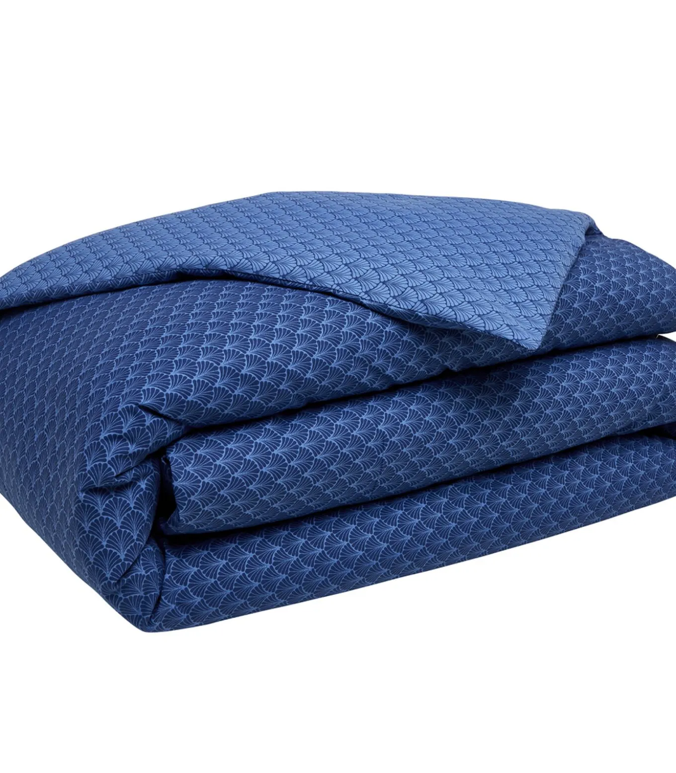 Het omkeerbare dekbedovertrek is op beide zijden bedrukt met het motief ‘schubben’ waarbij de voorzijde donkerder is dan de keerzijde.