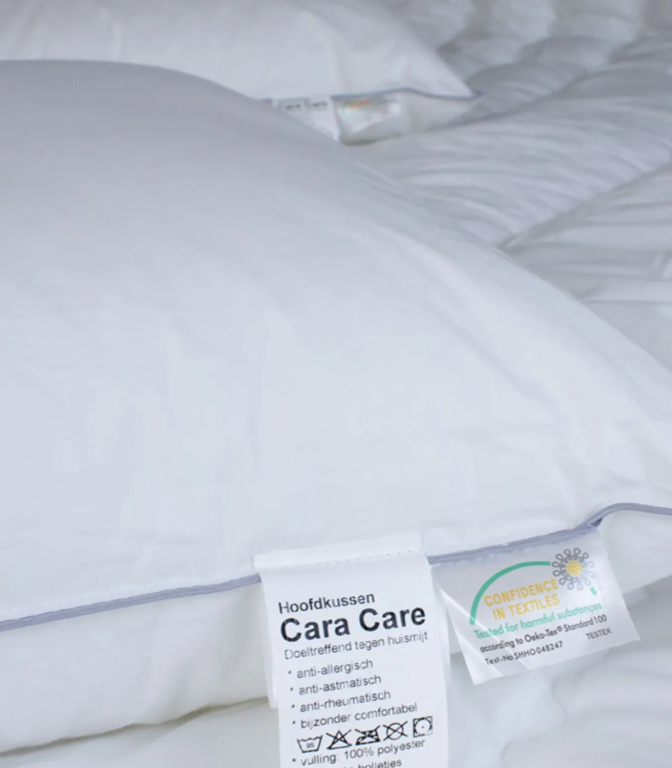 Cara Care Hoofdkussens zijn verzegeld door een hygiëne–verzegeling, zo bent u ALTIJD gerustgesteld van een nieuw, ongebruikt en onbeslapen hygiënisch product.