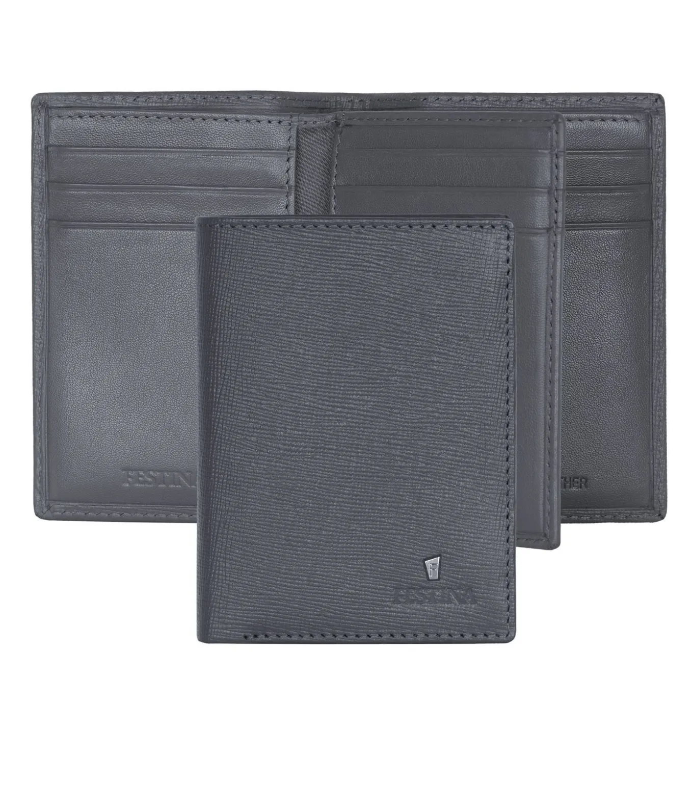 De “Chronobike” lijn van kleine lederwaren is gemaakt van zorgvuldig geselecteerd echt leder met een saffiano textuur. Deze grijze versie is versierd met de iconische handtekening van het F–logo in de vorm van een trapezium, in chroomkleur. Het wordt onderstreept door de naam Festina die in reliëf in het leder is aangebracht. Deze kaarthouder is minimalistisch, compact en zeer praktisch, met talrijke vakjes voor pasjes en twee vakjes voor bankbiljetten aan de bovenkant. Alle Festina artikelen zijn voorzien van een beschermende RFID voering. Dimensions: 112 x 83 x 25 mm, Material: Leather