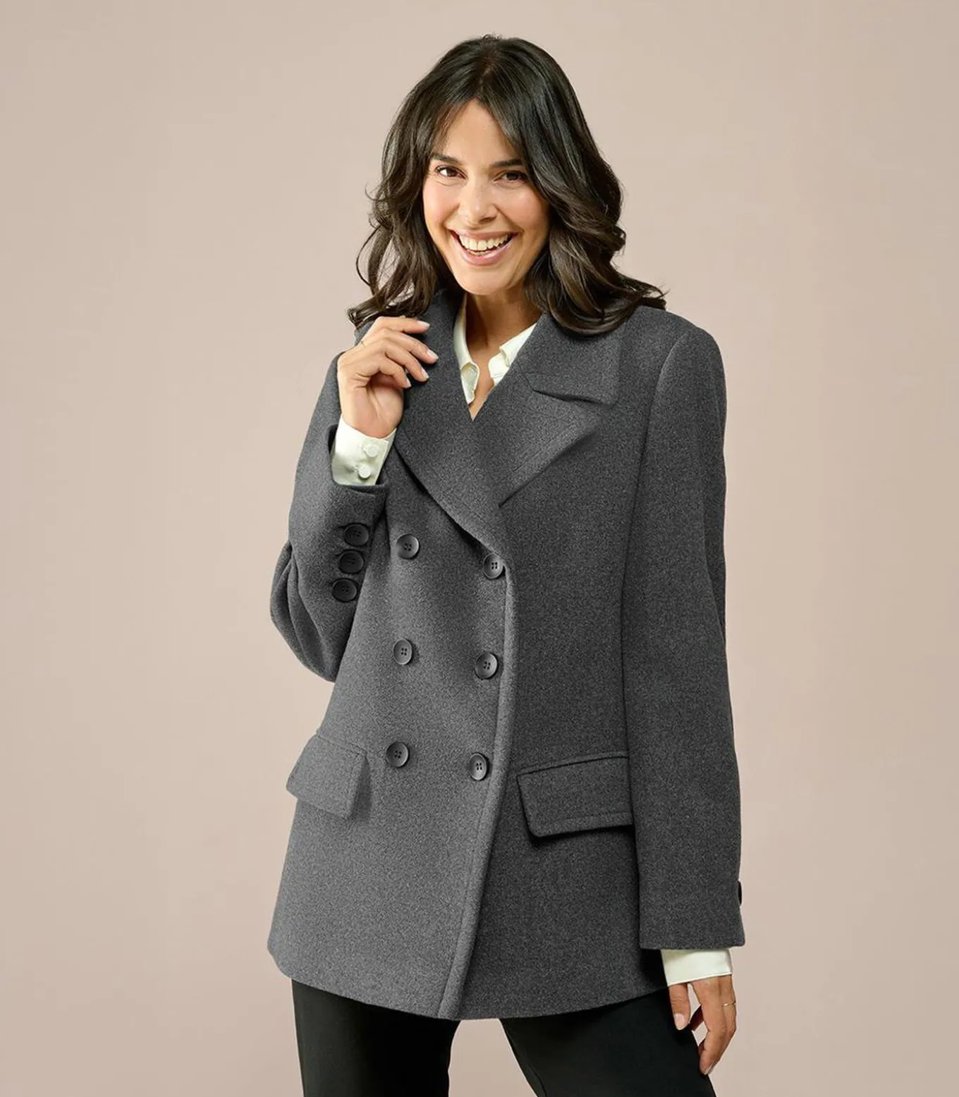 De Austin coat in grijs is een elegante wollen jas voor dames die comfort en tijdloos design moeiteloos samenbrengt. Deze boxy grijze jas is voorzien van een klassieke double breasted knoopsluiting en praktische klepzakken aan de voorkant, waardoor hij zowel stijlvol als functioneel is. Het rechtvallende model met lange mouwen valt over de heup en geeft een verzorgde, ontspannen uitstraling. Dankzij de normale pasvorm zit de jas comfortabel en flatteert hij diverse silhouetten. De Austin coat grijs is vervaardigd uit 60% wol en 40% polyester, wat warmte, duurzaamheid en een luxe uitstraling biedt, terwijl de 100% polyester voering extra draagcomfort toevoegt. De non–stretch kwaliteit zorgt ervoor dat de jas zijn vorm behoudt en altijd netjes oogt, ook bij het dragen van meerdere lagen. Deze grijze wollen jas vormt zo een veelzijdige en stijlvolle basis voor elke wintergarderobe, geschikt voor zowel dagelijkse activiteiten als chique gelegenheden.
