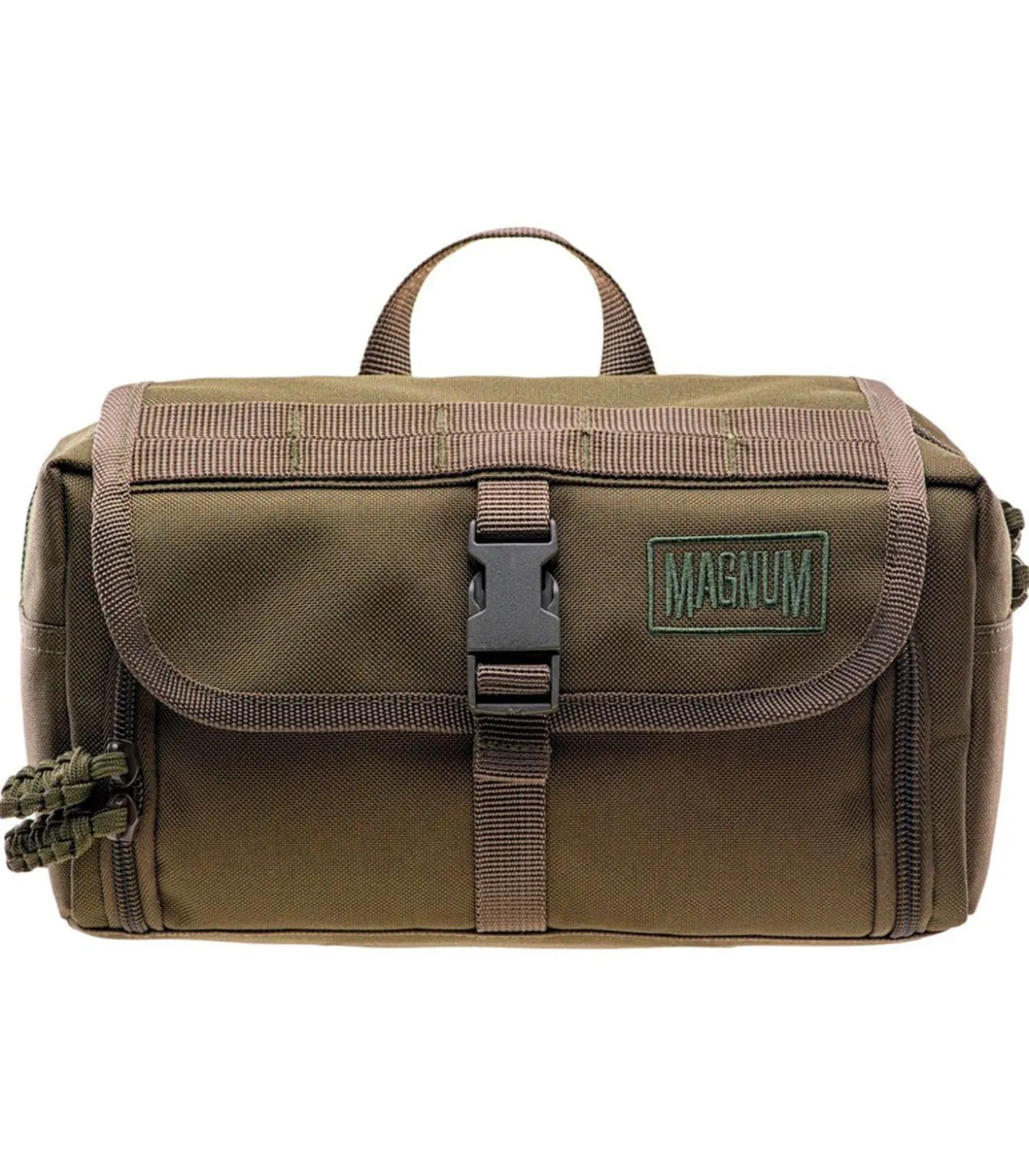 Deze toilettas van Magnum Castor is gemaakt van 100% polyester. Hij is ongeveer 24 cm breed, 15 cm hoog en 12 cm lang. De tas sluit veilig met een gesp en tweewegrits. Een handvat en MOLLE–systeem zorgen voor eenvoudig transport. Het ontwerp is voorzien van het Magnum–logo. De tas heeft één hoofdvak en twee binnenvakken van gaas met ritssluiting. Deze tas heeft een totale inhoud van 4,5 liter.