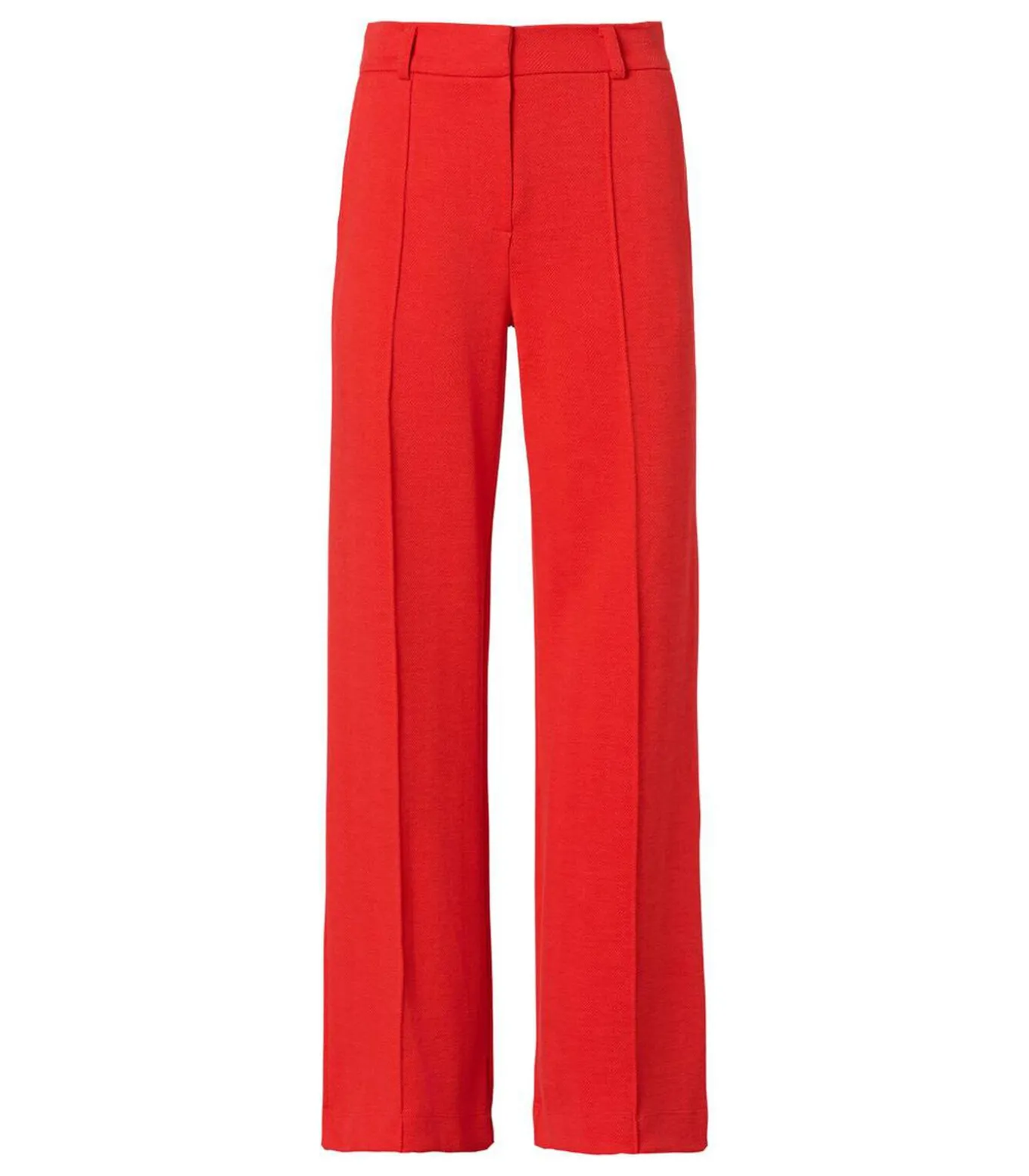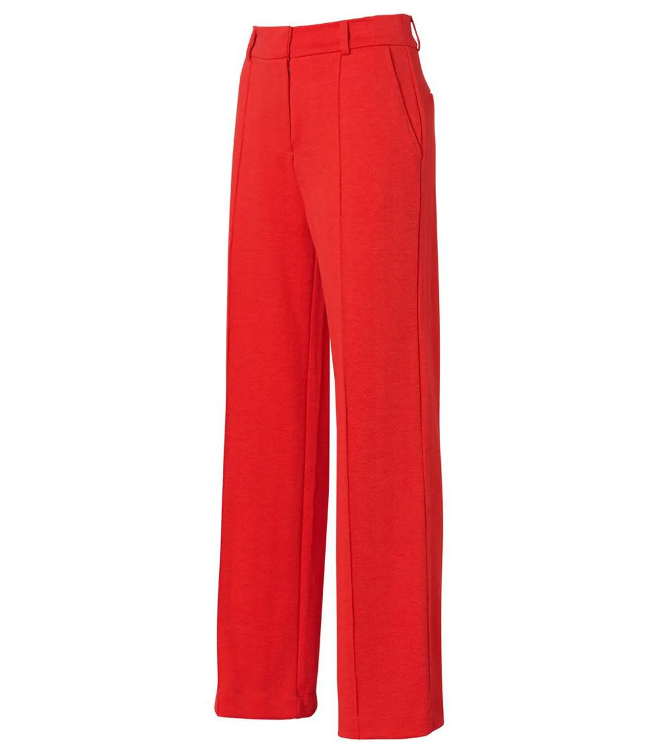 Voeg kleur en elegantie toe aan je garderobe met de Celia pantalon in koraalrood van Mart Visser. Deze eigentijdse damespantalon combineert een krachtige uitstraling met maximaal draagcomfort, waardoor hij geschikt is voor elke gelegenheid, van zakelijke afspraken tot een casual weekendlook. De levendige koraaltint maakt van deze broek een echte eyecatcher, terwijl de rechte pijpen en subtiele pintuck aan de voorkant zorgen voor een slank en gestroomlijnd silhouet. De aansluitende pasvorm op de heupen benadrukt de vrouwelijke vormen, terwijl de iets lossere snit vanaf de knie zorgt voor een flatterend geheel. De lichtgewicht, soepele stof met een vleugje stretch beweegt mee met het lichaam en biedt de hele dag comfort. De elastische tailleband aan de achterzijde garandeert een perfecte pasvorm zonder afbreuk te doen aan stijl. Functionele schuine steekzakken maken het ontwerp compleet en geven een praktische, moderne touch.