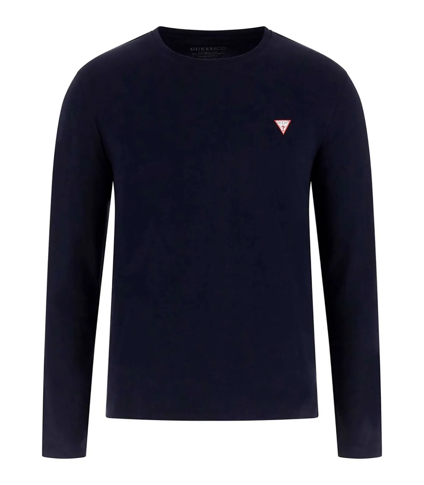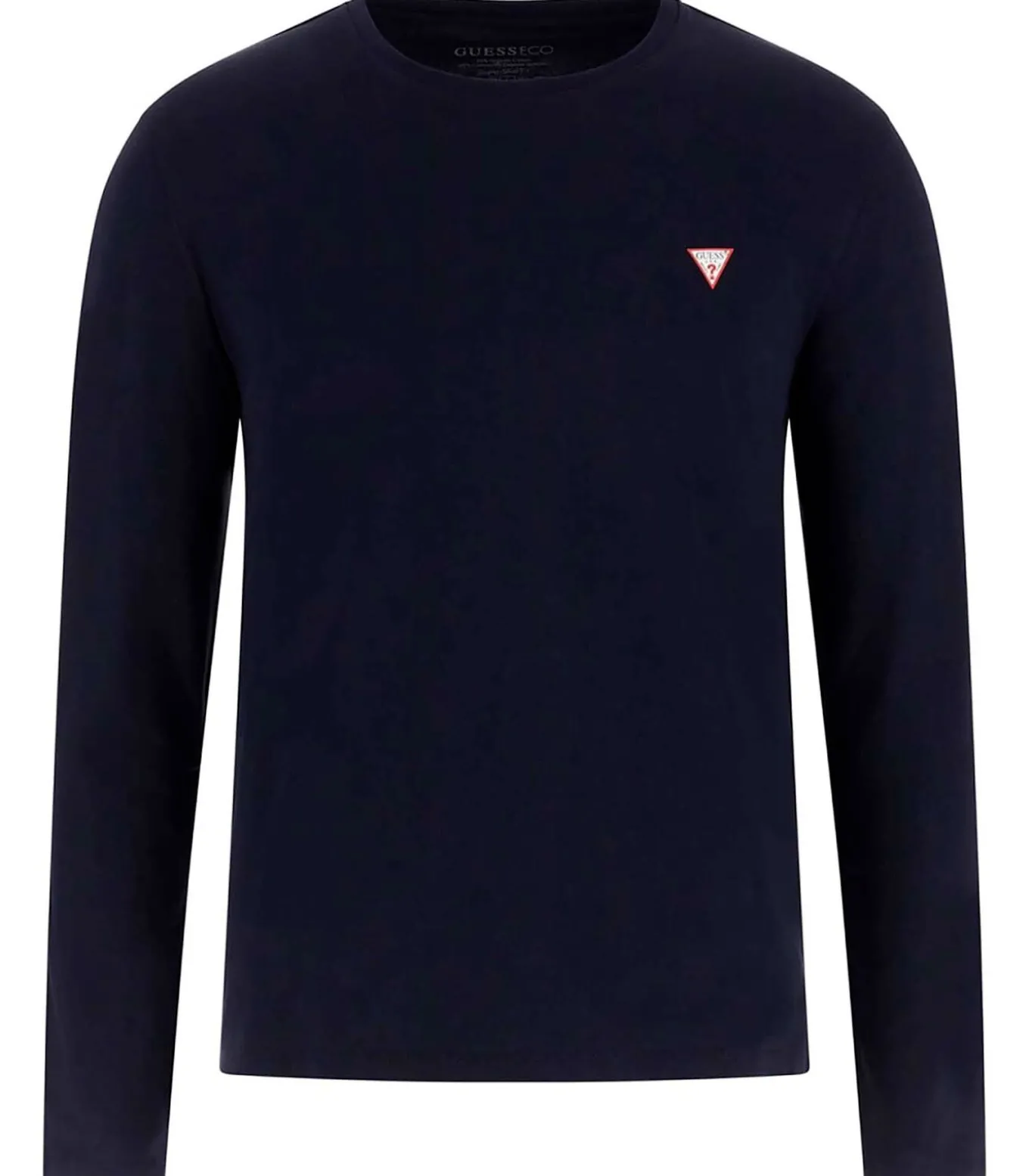 Kleur: Smart Blue Samenstelling: 95% katoen, 5% elastaan Mouwen: lang Halslijn: ronde hals Pasvorm: slank Details: Jersey T–shirt met klein driehoekig logo op de borst Duurzaamheid: gemaakt van biologische katoenvezels Gebruik: perfect voor een casual en alledaagse look, ideaal om te dragen onder jassen of sweatshirts voor een veelzijdige en moderne outfit