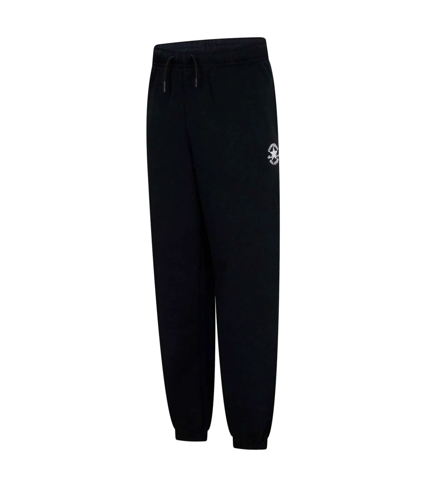 Kleur: Zwart Samenstelling: 60% Katoen, 40% Polyester Lengte: Lang Pasvorm: Regular Fit Binnenkant: Elastische taille met verstelbaar trekkoord Details: Converse–logo aan de zijkant, elastische manchetten Gebruik: Ideaal voor de vrije tijd en dagelijkse activiteiten van kinderen, ze combineren comfort en sportieve stijl