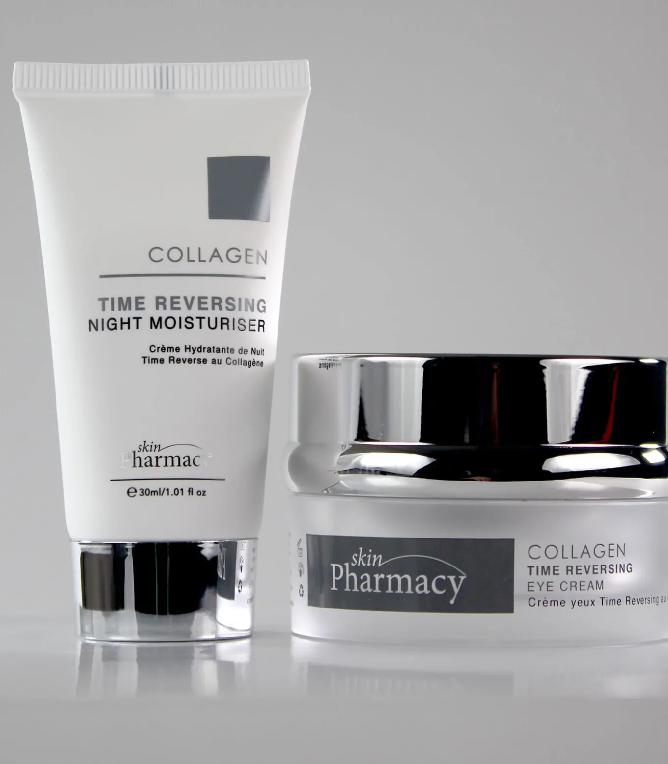 Ingrediënten:Our Collagen Time Reversing Night Moisturiser is designed to work at night, when the skin is most receptive to repair, keeping the skin hydrated and nourished whilst still working to combat the signs of ageing as you sleep. Key ingredients:1) Marine collagen amino acids aim to hydrate the skin, working to prevent water loss and improve the suppleness of the skin.2) Lupin seed – is an active ingredient that is aims to stimulate the production of high quality collagen in skin. It aims to plump and firm the look of the skin.4) Vitamin E is high in antioxidants that aim to protect the skin from free radical stress, it also smoothen and hydrates the skin.4) Vitamin C aims to boost the skin brightness, smooth uneven skin tone and protect from environmental stress.
