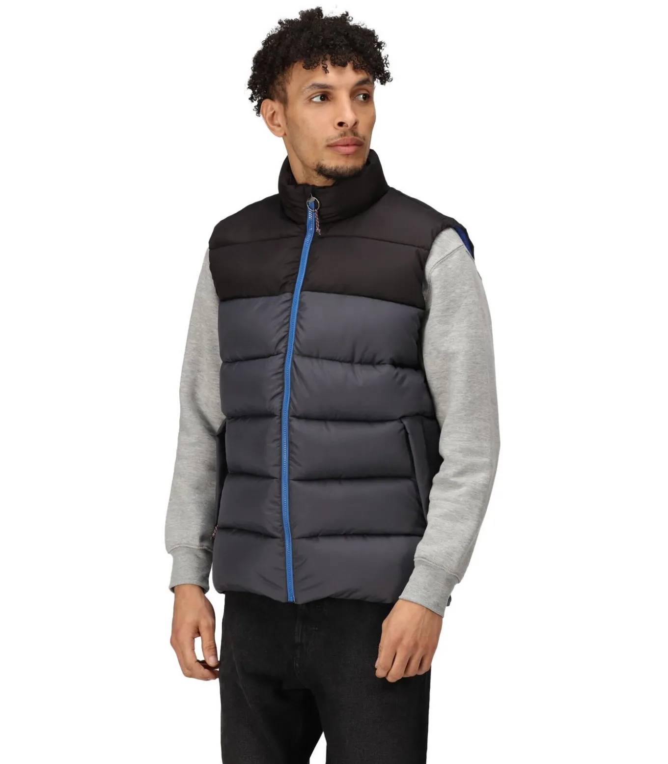 Dit kledingstuk is een mouwloos gilet van Regatta gemaakt van 100% polyester. Het heeft een doorgestikt colorblock–design en is voorzien van een opstaande kraag en een ritssluiting over de hele lengte. Het gilet heeft twee zijzakken met ritssluiting en is gevuld met een zware gerecyclede vulling. Het materiaal weegt 60gsm. Over het geheel genomen biedt dit op vintage geïnspireerde stuk van Regatta isolatie en veelzijdigheid in laagjes zonder mouwen.