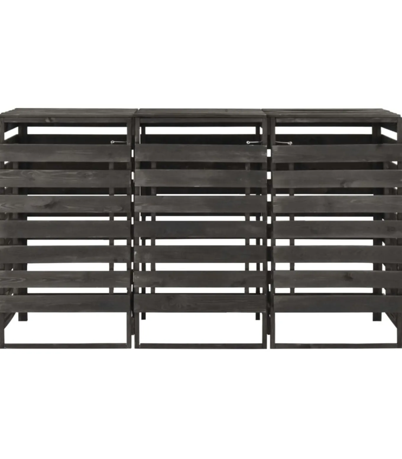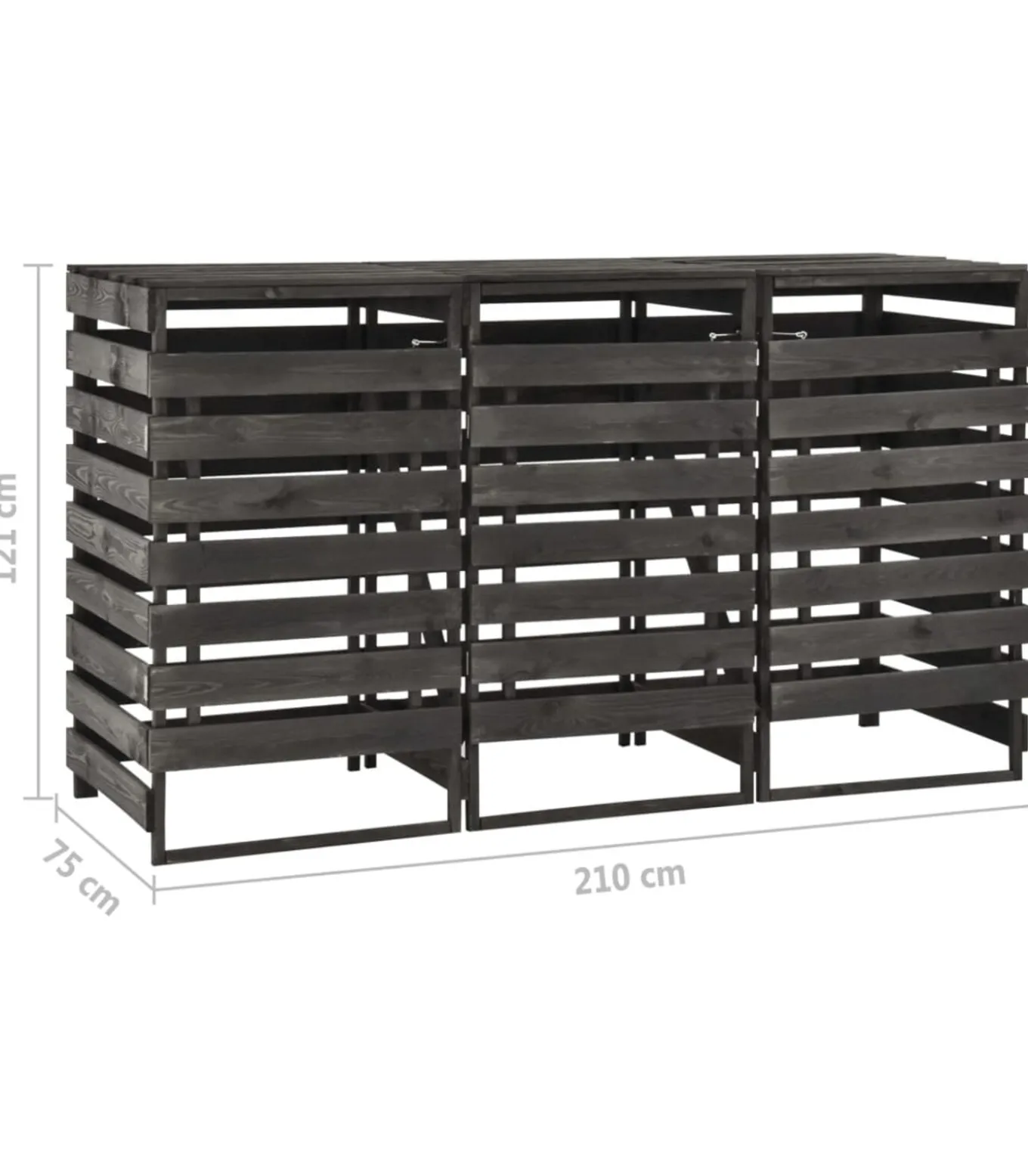 De berging heeft deksels die kunnen worden geopend voor gemakkelijke toegang tot de afvalcontainers en om het afval snel en eenvoudig te deponeren. Daarnaast heeft de voorzijde drie deuren zodat de afvalbakken eenvoudig verwijderd en geleegd kunnen worden. De berging is uitgerust met sloten aan de voorzijde om de deuren goed af te sluiten. Hij is gemaakt van massief grenenhout met verfafwerking waardoor deze berging zeer stevig, duurzaam en rotbestendig is. Hij kan 3 afvalbakken van 240 L opbergen en past mooi in je tuininrichting.