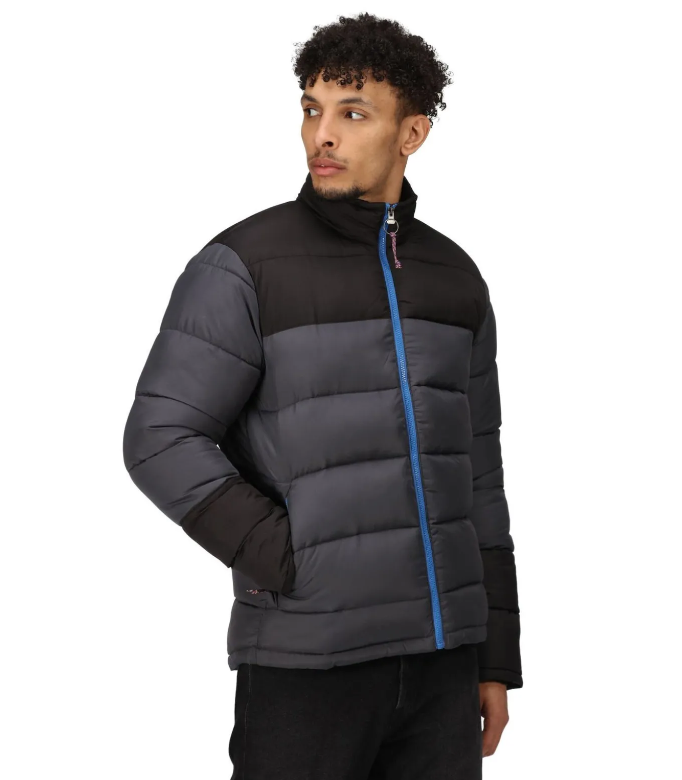 Dit geïsoleerde pufferjack van Regatta Mens is ontworpen voor koud weer. Het heeft een 100% polyester buitenkant die isolerend en waterafstotend is. De vulling is gemaakt van zwaar gerecycled materiaal voor optimale warmte. Het quiltpatroon heeft contrasterende details. Lange mouwen met stormmanchetten beschermen de armen. Een opstaande kraag omsluit de nek. Voor opslag zijn er twee zijzakken met rits. De rits over de hele lengte sluit de jas. Deze vintage–geïnspireerde stijl is zeer geschikt voor koele herfstdagen.