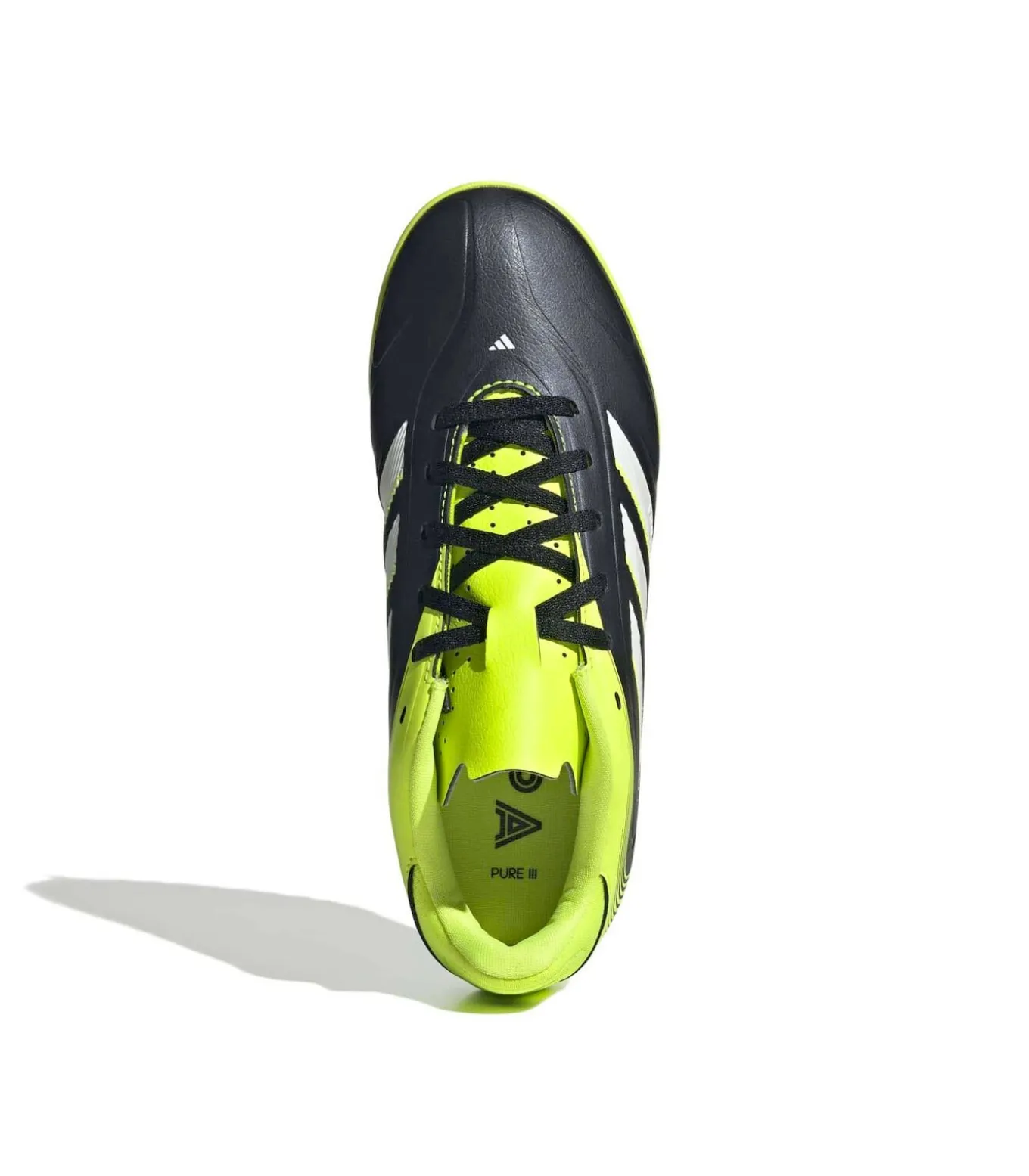 Kleur: Core Black/Cloud White/Lucid Lemon Pasvorm: Regular Sluiting: Veters Bovenwerk: Zacht synthetisch materiaal met 3D–print op de voorvoet Buitenzool: Rubber met noppen voor kunstgras Veld: Futsal op kunstgras (TF) Details: Club Junior–versie ontworpen voor comfort en controle; zacht bovenwerk voor een natuurlijke touch; 3D–print voor meer precisie; rubberen buitenzool geoptimaliseerd voor grip op kunstmatige oppervlakken Gebruik: Ideaal voor jonge voetballers die op zoek zijn naar comfort en precisie bij het spelen op kunstgrasvelden