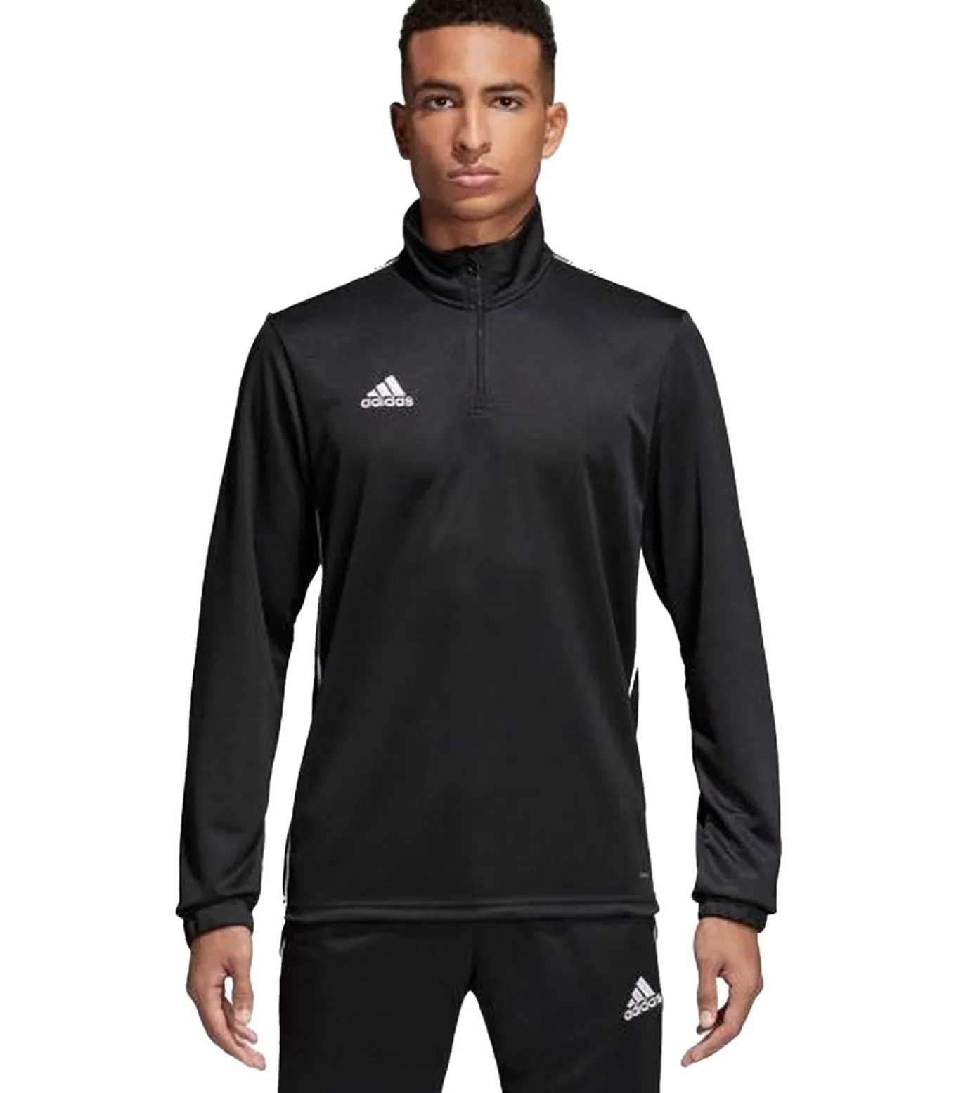 Adidas CORE 18 Zwarte West met polyester, vervaardigd van 100% polyester. Dit ontworpen door contrasterende draadjes en geborduurde logo. Deze west is voorzien van Aeroready, Ademend en lichtgewicht technologieën. De manchetten zijn elastiek. De halsband is hoog en de mouw heeft lange armten. Deze west is los en gesloten met een kwart rit. Het passende maat is als volgt: 5–6 jaar (24 inch), 7–8 jaar (25 inch) en 13–14 jaar (34 inch).