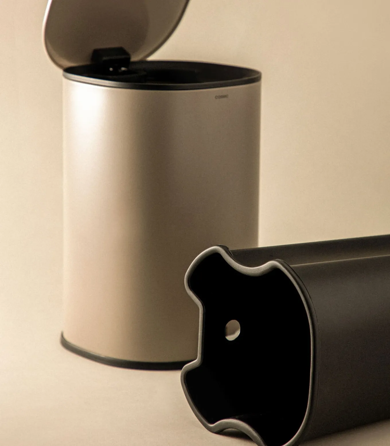 De Cosmic Essentials afvalbak is met zijn moderne en compacte design ideaal voor kleine badkamers en keukens. Dankzij het pedaalsysteem opent het deksel gemakkelijk en zonder direct contact, wat zorgt voor hygiëne. De afvalbak is gemaakt van duurzame materialen, heeft een inhoud van 5 liter en is 285 x 155 x 295 mm groot, perfect om kleine ruimtes netjes te houden.
