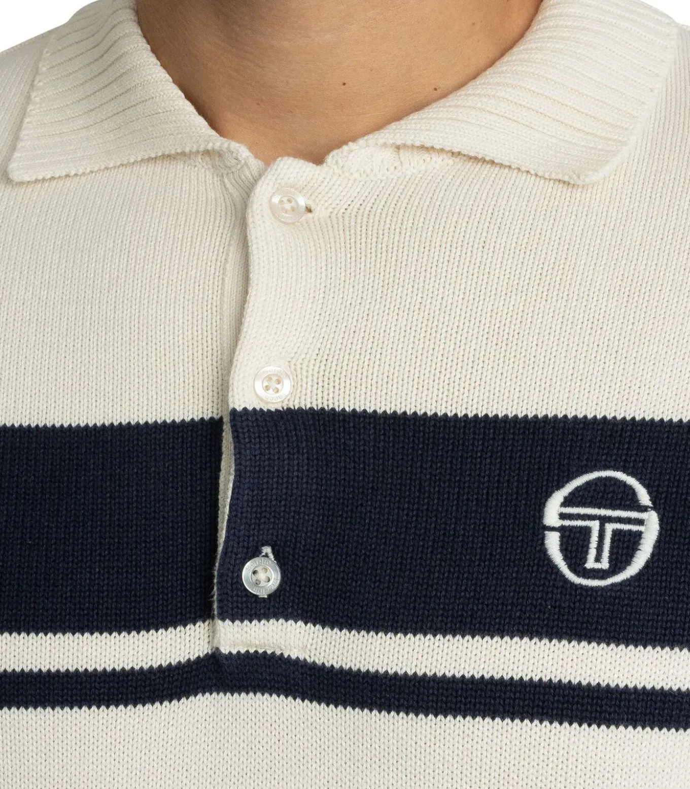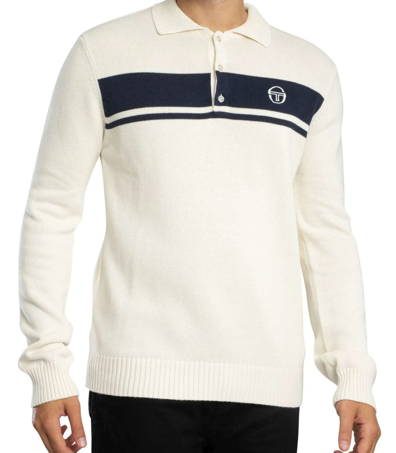 Sergio Tacchini presenteert de Damarindo Longsleeved Polo Knit in Gardenia/Maritiem Blauw, een combinatie van traditionele poloshirtelementen en gebreide constructie. Het ontwerp omvat een merkknoopsluiting, een geborduurd logo op de borst, geribbelde manchetten en zoom en een hoogwaardige afwerking. Deze polo met lange mouwen biedt zowel comfort als duurzaamheid en toont Sergio Tacchini’s toewijding aan het combineren van een traditionele stijl met alledaagse veelzijdigheid.