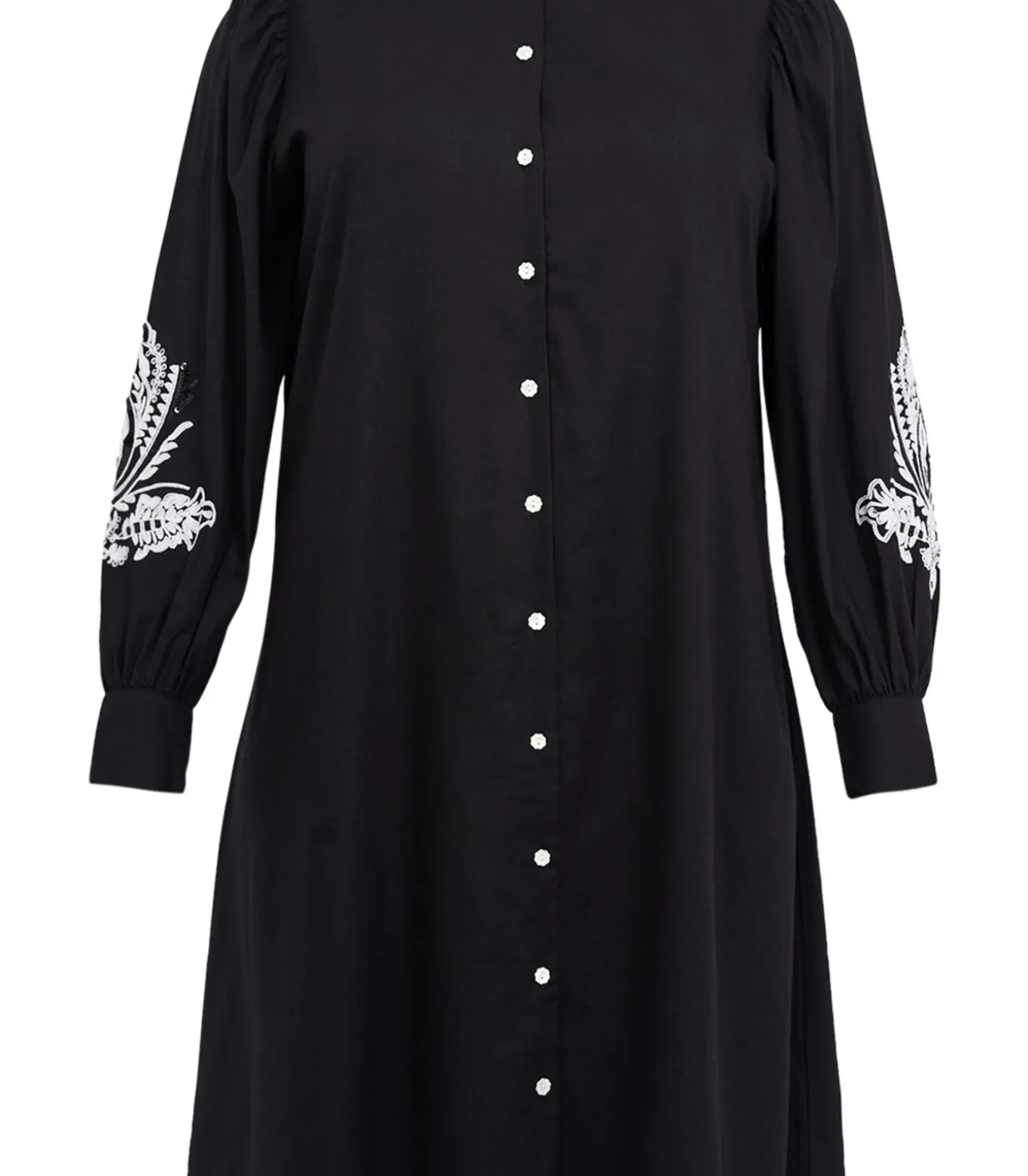 Maatindicatie: Plus–Size Kleding Mouwlengte: 65,5 cm in maat 42/44 Totale lengte: 110 cm in maat 42/44 Borstbreedte: 60 cm in maat 42/44 Het model is 177 cm lang en draagt maat 42/44