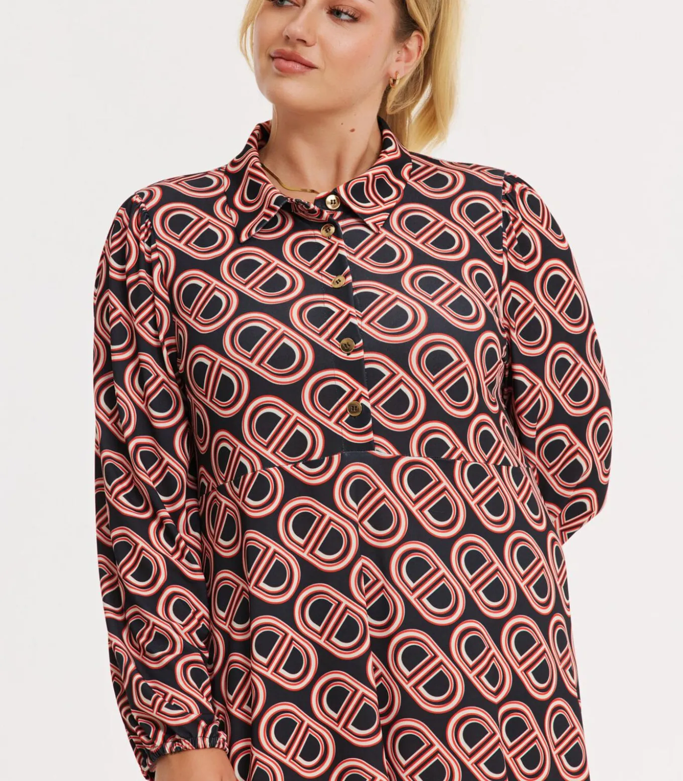 Maatindicatie: Plus–Size Kleding Mouwlengte: 64,5 cm in maat 42/44 Totale lengte: 120 cm in maat 42/44 Borstbreedte: 53 cm in maat 42/44 Het model is 177 cm lang en draagt maat 42/44