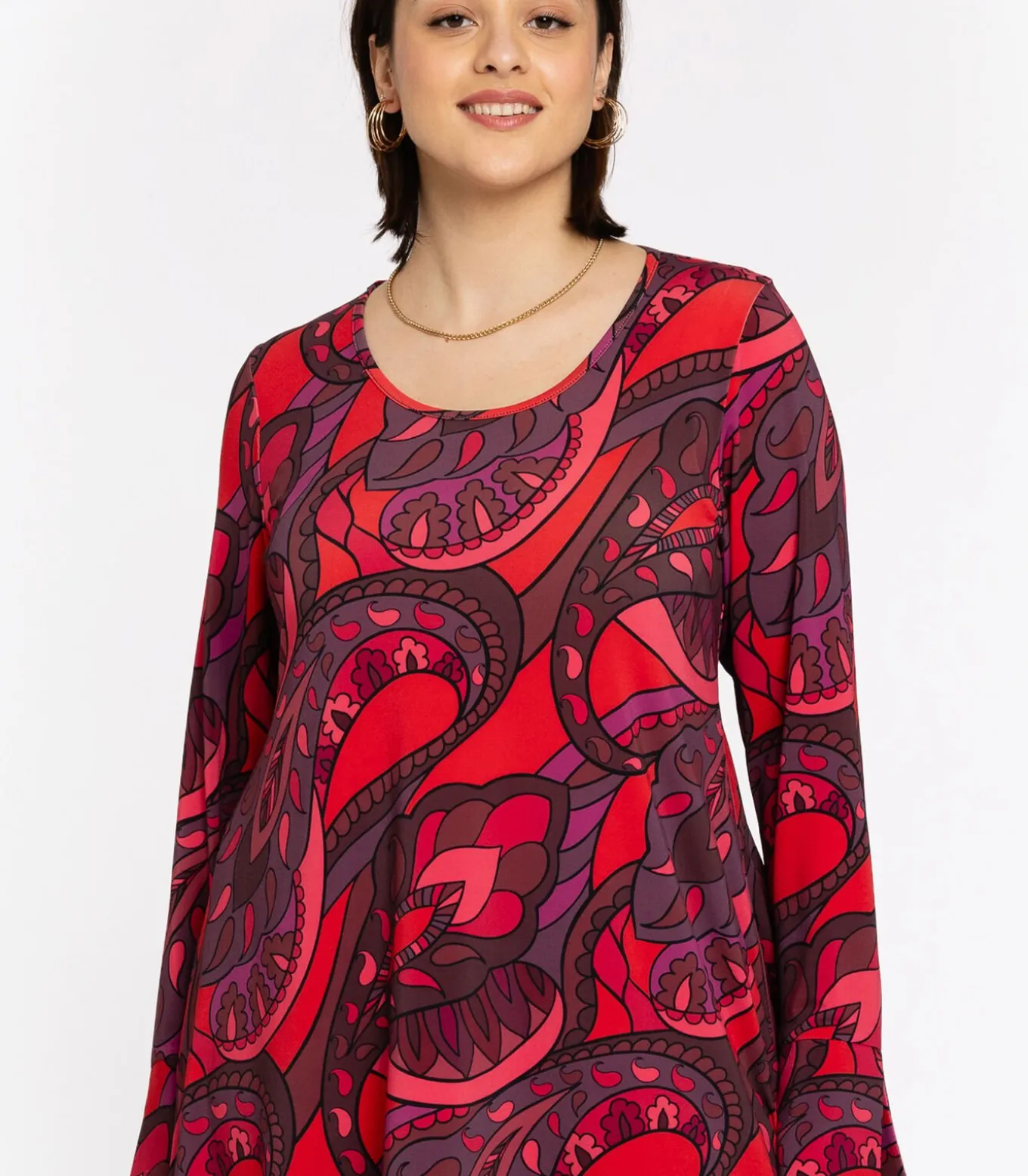 Maatindicatie: Plus–Size Kleding Mouwlengte: Lange mouwen Totale lengte: 90 cm in maat 42/44 Borstbreedte: 53 cm in maat 42/44 Het model is 177 cm lang en draagt maat 42/44