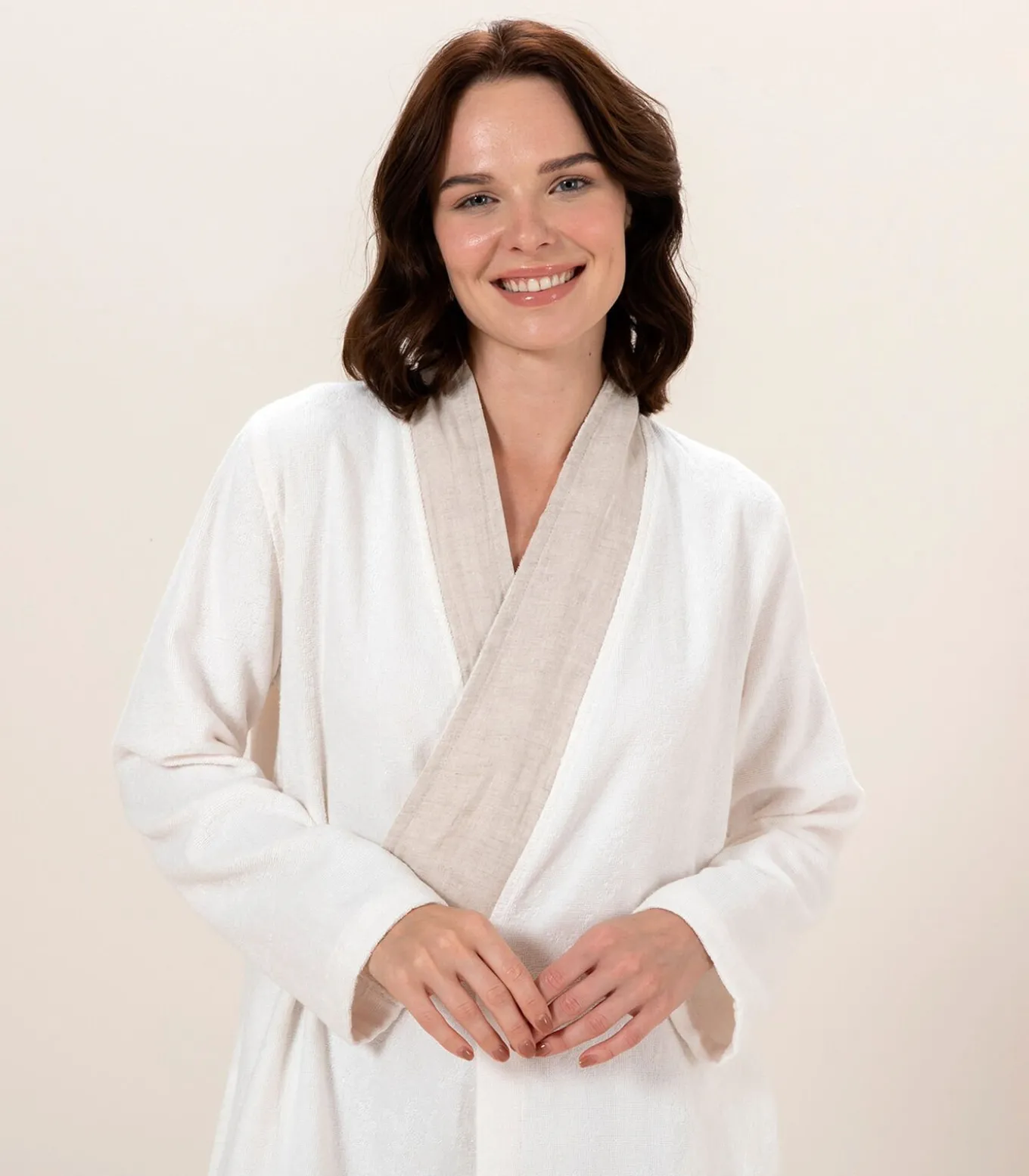 Ontdek onze prachtige badjas van bamboe, die zachtheid, elegantie en milieuvriendelijkheid combineert. Gemaakt van natuurlijke bamboevezels, biedt deze badjas een luxueus en comfortabel gevoel bij elk gebruik. De zijdezachte en absorberende textuur maakt het perfect om jezelf in te wikkelen na een ontspannende douche of bad. Met zijn elegante snit en verfijnde afwerkingen voegt deze bamboe badjas een vleugje stijl toe aan je dagelijkse routine.Wat is bamboe? Bamboevezel is een natuurlijke vezel afkomstig van bamboebomen. Het is hypoallergeen en volledig biologisch. Onze stoffen van deze kwaliteit zijn gemaakt van draad van bamboevezels. Bamboevezel is van nature antibacterieel door de aanwezigheid van de stof “Bamboe–Kun” in zijn samenstelling en heeft het vermogen om lichaamszweet snel te absorberen. Het is ook een zeer lichte vezel met een zachtheid die lijkt op die van zijde en kasjmier. De kleur van de producten blijft onveranderd, zelfs na 50 wasbeurten, dankzij de niet–vervagende eigenschap van de vezel. Inhoud van de verpakking: 1 badjas Producteigenschappen : Materiaal: 60% Katoen, 40% Bamboe Het model: Maat: 179 cm Borstomvang: 85 cm Tailleomvang: 60 cm Bekkenomvang: 93 cm. Het model draagt maat S. Meer over het merk: Chakra is een Turks merk dat natuur en elegantie naadloos combineert om prachtige huishoudtextiel en accessoires te creëren. Met collecties gebaseerd op bamboe producten Chakra heeft verfijnde ontwerpen die een positieve levensenergie hebben. Van bad– en strandhanddoeken, badjassen, beddengoed, homewear, woonaccessoires tot kaarsen, Chakra biedt een assortiment van producten dat je geest voedt en je energie vernieuwt. Door zijn authenticiteit onderscheidt Chakra zich in de sector van huishoudtextiel en badkamer. Het nodigt iedereen uit om deze natuurlijkheid thuis te ervaren.