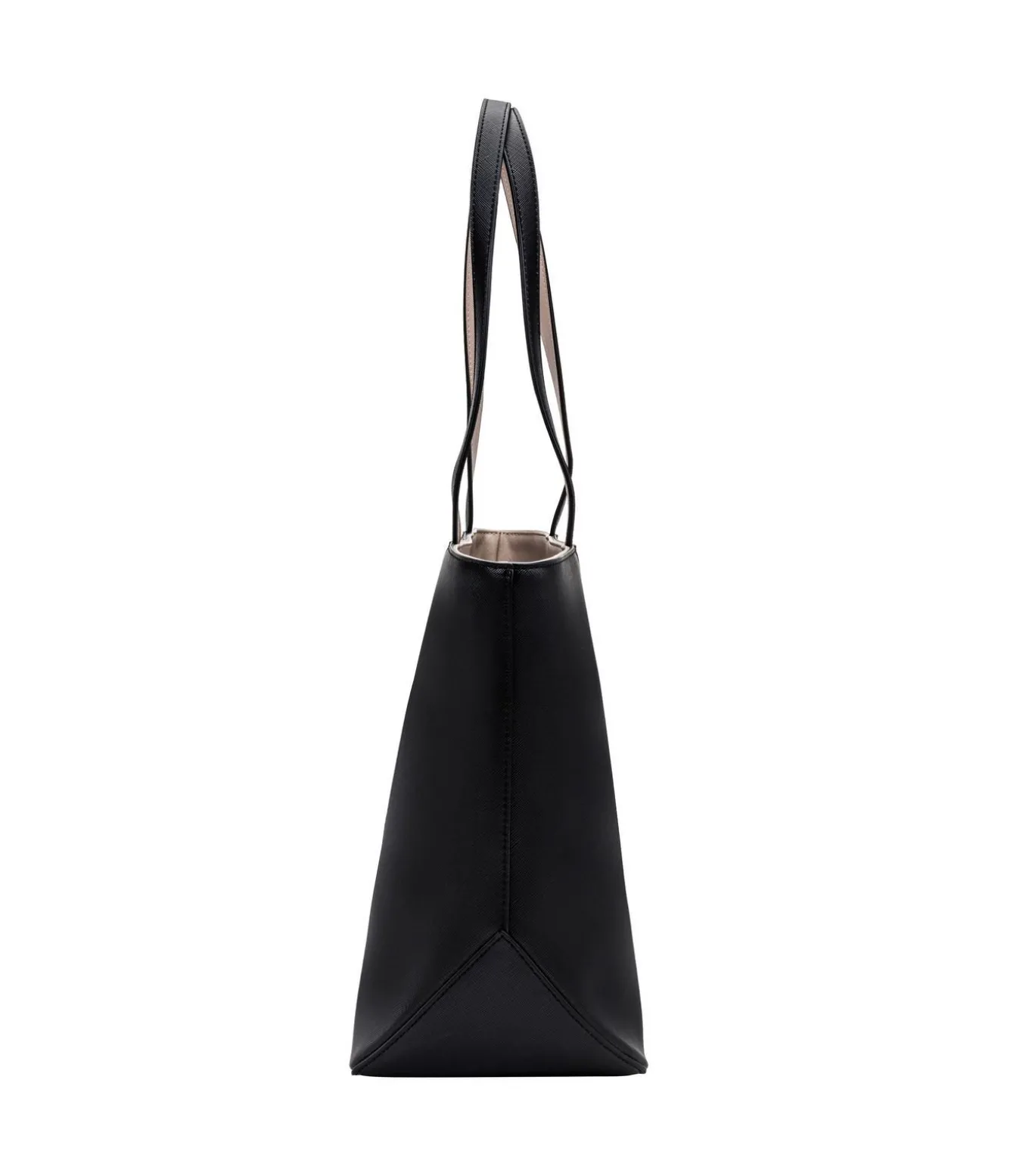 Festina’s gevierde “Mademoiselle” lijn wordt dit seizoen aangevuld met een nieuw aanbod damestassen. Deze grote draagtas is gemaakt van prachtig gestructureerd saffiano veganistisch leer (PU). Elk detail is delicaat bewerkt, zoals de iconische handtekening F gold plate, aanwezig in de hele collectie en onderstreept met een prachtig reliëf FESTINA logo. Het product is prachtig ontworpen en heeft kleurrijke, contrasterende en zeer praktische interieurs, roamy interieurs. Deze specifieke tas heeft een magnetische knoopsluiting, en een zeer groot binnenvak met rits, perfect voor een laptop en andere waardevolle spullen. Het heeft ook een ander plat vak en een plat vak met rits, perfect om documenten en andere benodigdheden te organiseren. Deze zwarte versie heeft een contrasterend beige interieur, passend bij de gelijknamige portemonnee. Dimensions: 450 x 150 x 280 mm, Material: Polyester