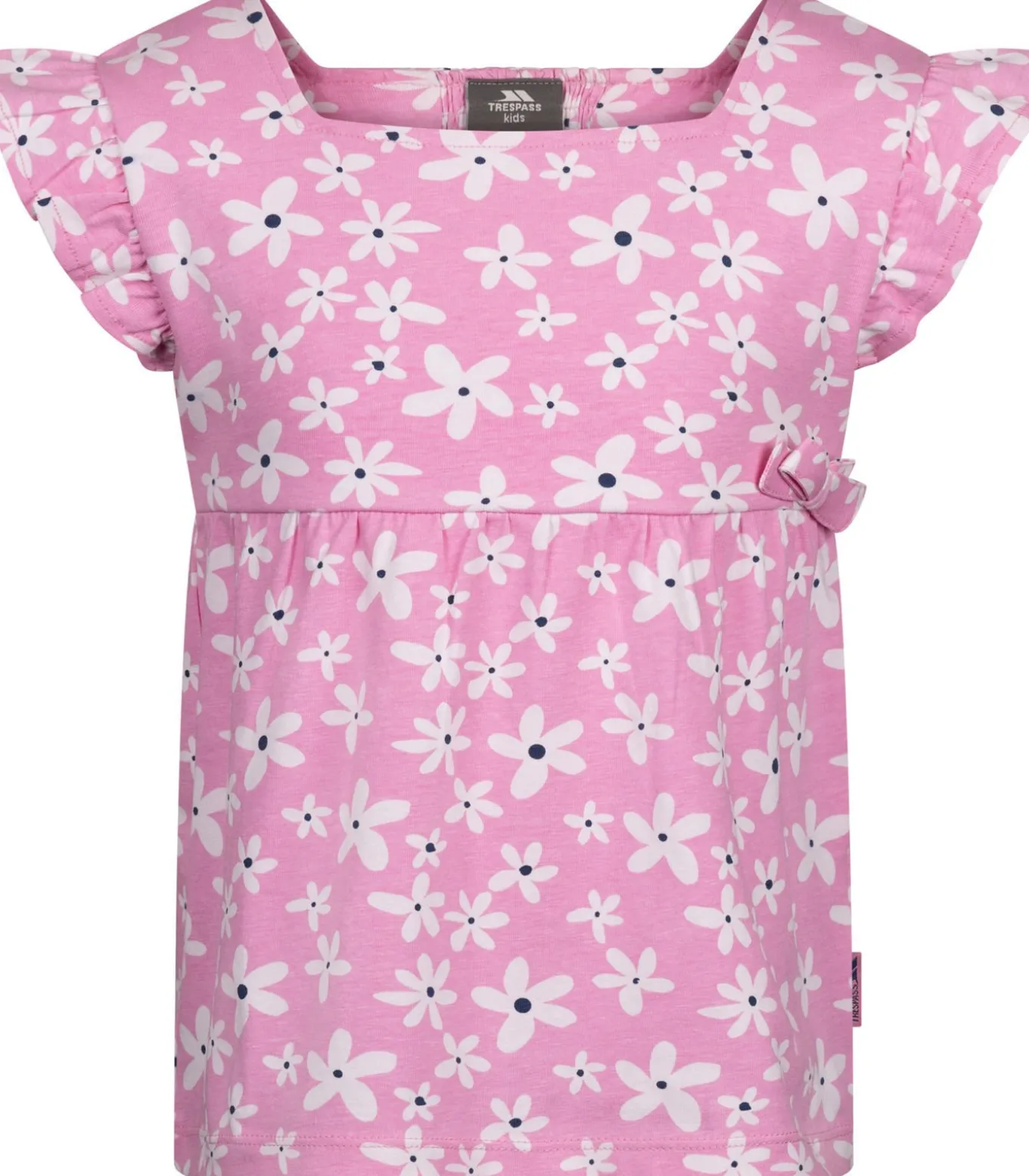 Trespass DAMIA roze T–shirt gemaakt van 100% katoen, met een gebreide stofstructuur en geheel bedrukt met bloemenmotief. Het heeft een franje– en korte mouwen en een vierkante halslijn. De ademend en duurzame stoftechnologie maakt het geschikt voor een gezonde lichaamstemperatuur en de strikdetail en gerimpelde buste geven het een moderne en trendy uitstraling. Sizes variëren van 21 inch voor 2–3 jaar, 22 inch voor 3–4 jaar, 24 inch voor 5–6 jaar, 26 inch voor 7–8 jaar, 28 inch voor 9–10 jaar en 31 inch voor 11–12 jaar.