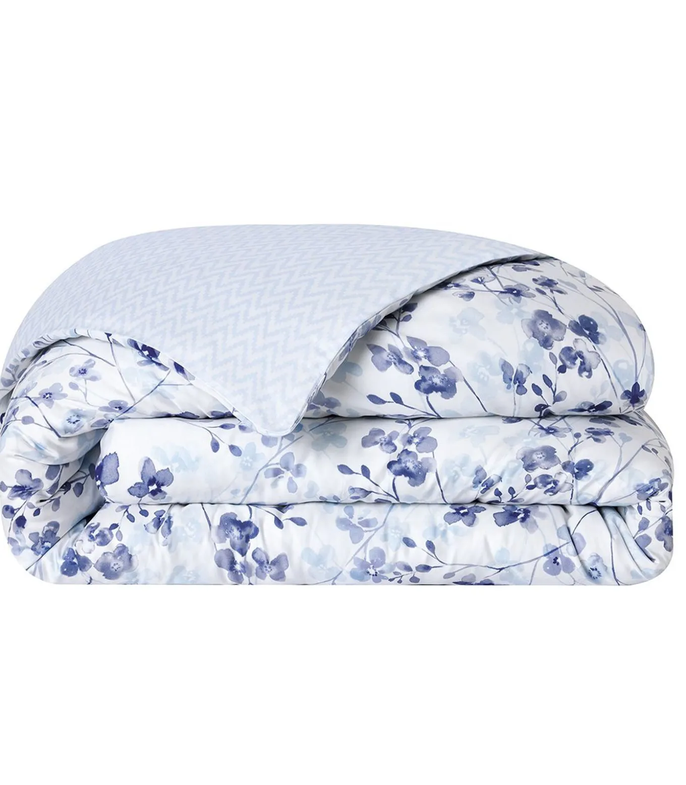 Aquarelblauwe bloemenprint op optisch witte achtergrondLichtblauwe visgraatprint op optisch witte achtergrond
