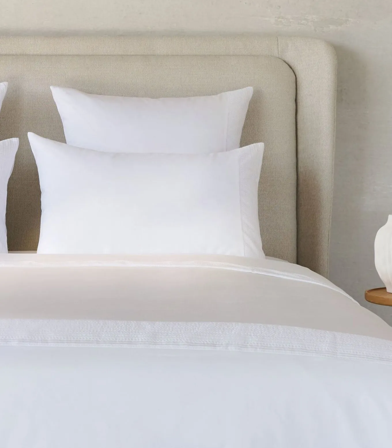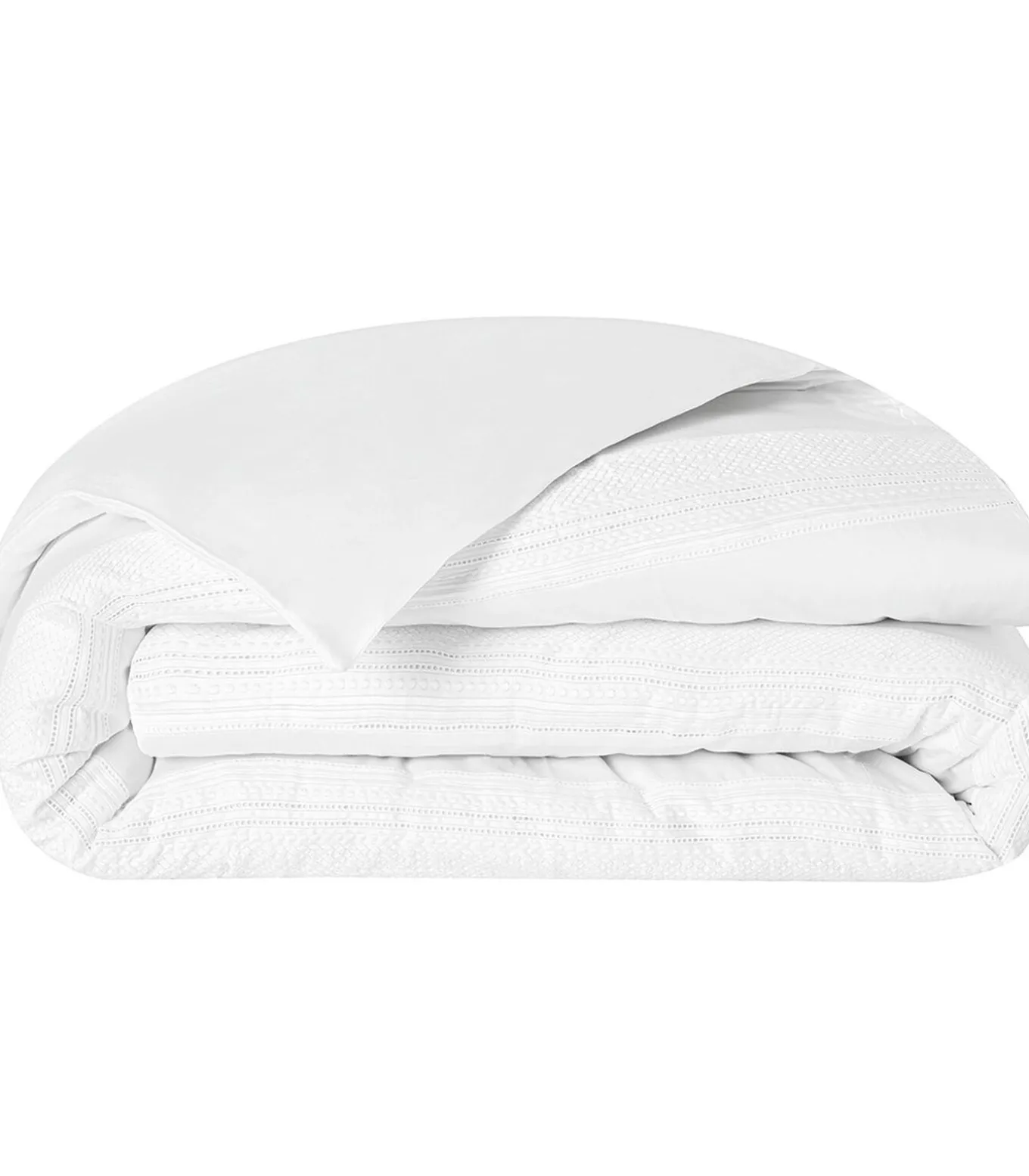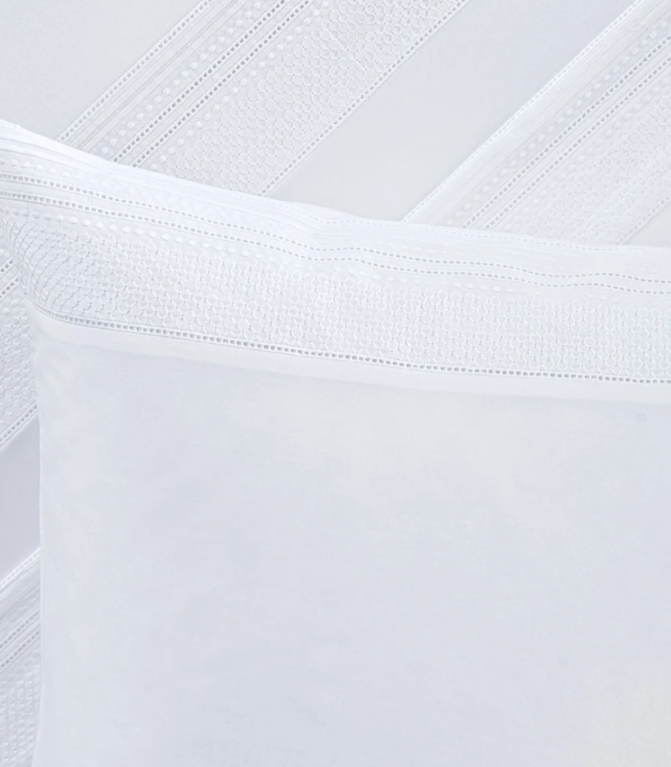 Voorkant effen wit met 2 ingevoegde geborduurde horizontale strepenAchterkant effen wit